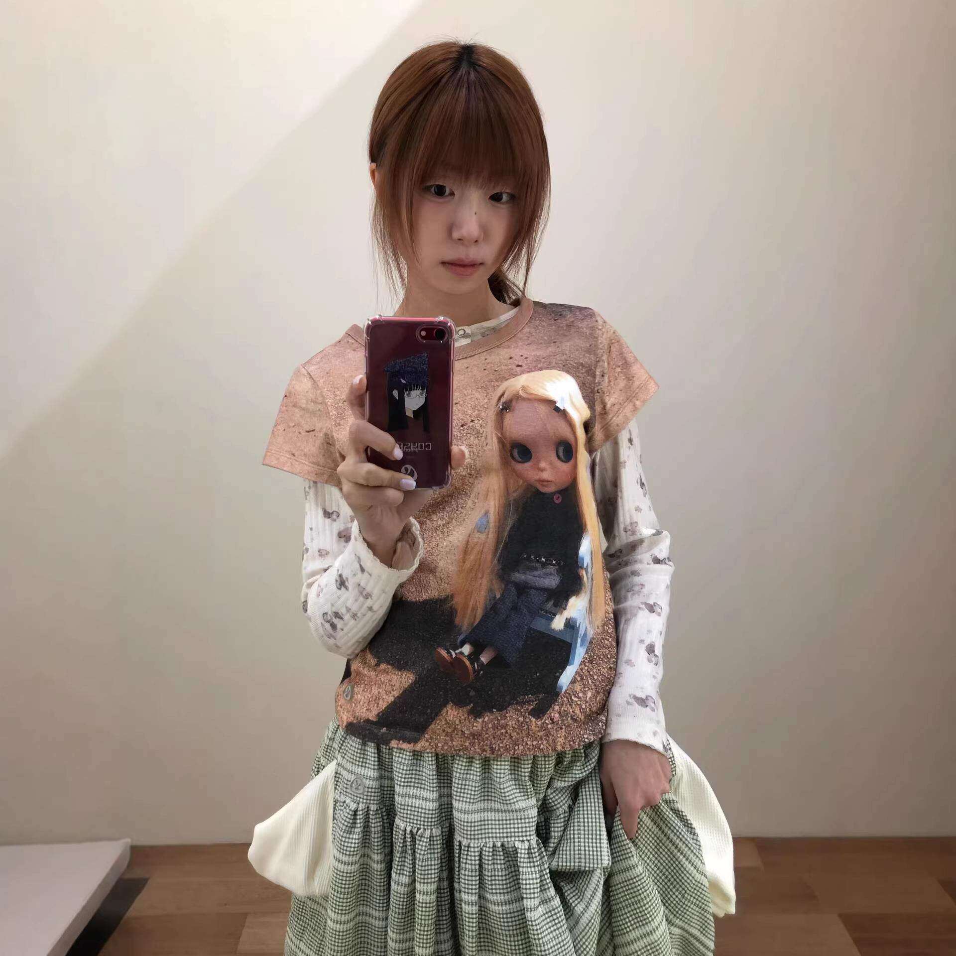 --------------------- 【现货】GROVE EDGE韩系女复古娃娃印花圆领修身纯棉正肩短袖T恤 【原售价】125元 【现售价】110元 【推荐理由】