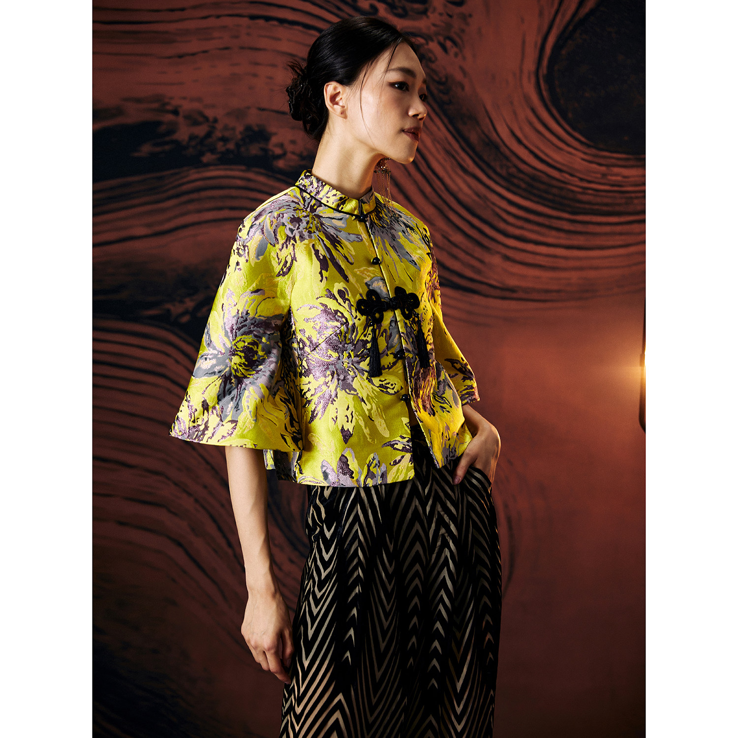 --------------------- 扶郎。原创复古国风女装 缃黄染竹 提花改良唐装中国结外套短上衣 【原售价】388元 【现售价】185元 【推荐理由】