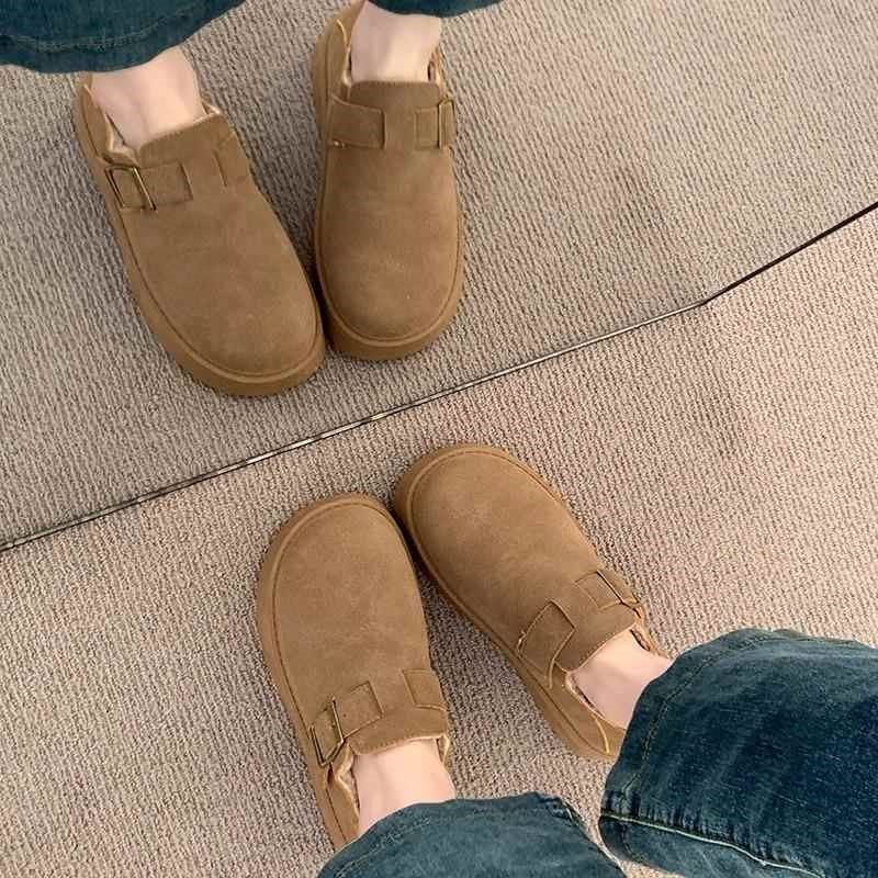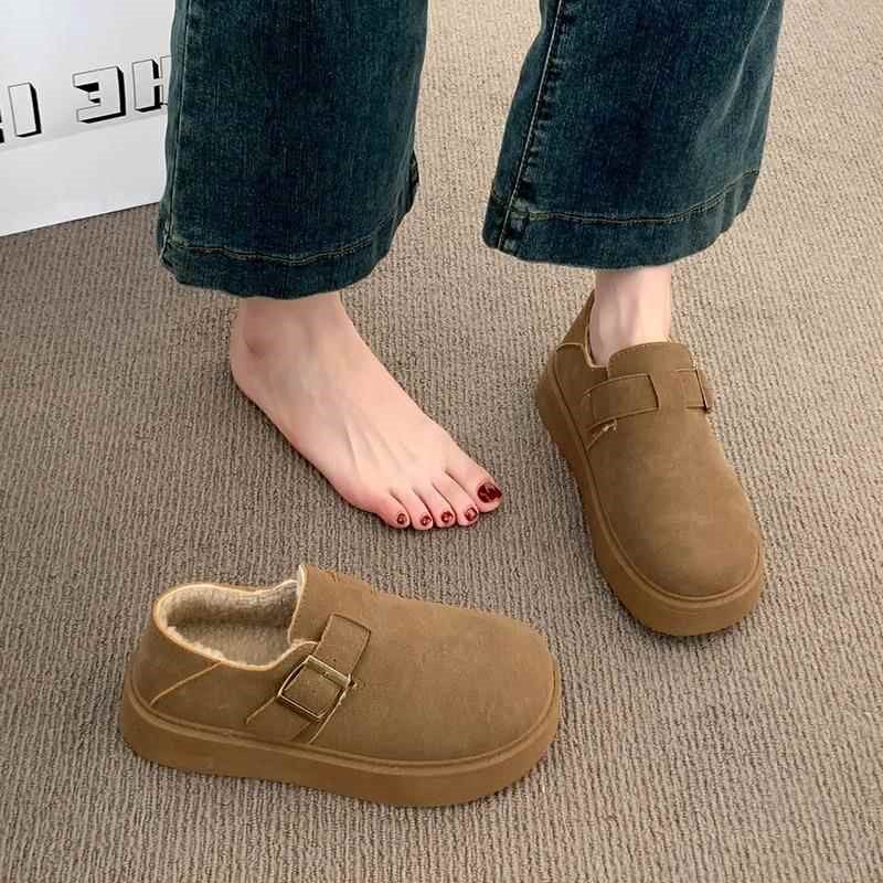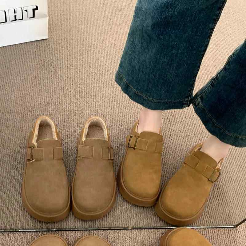 勃肯鞋女2024秋冬新款厚底松糕一脚蹬孕妇加绒加厚乐福鞋博肯棉鞋