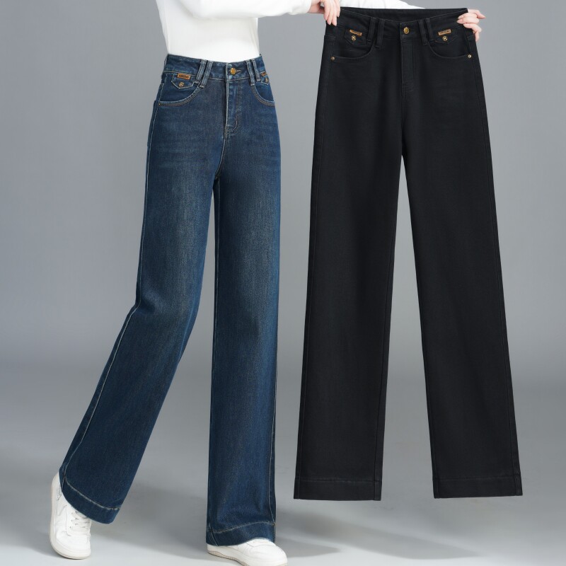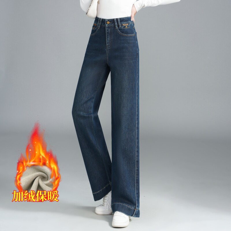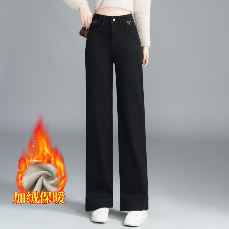 梦舒雅2025新款女裤牛仔裤女冬季加绒窄版阔腿裤直筒高腰长裤爆款