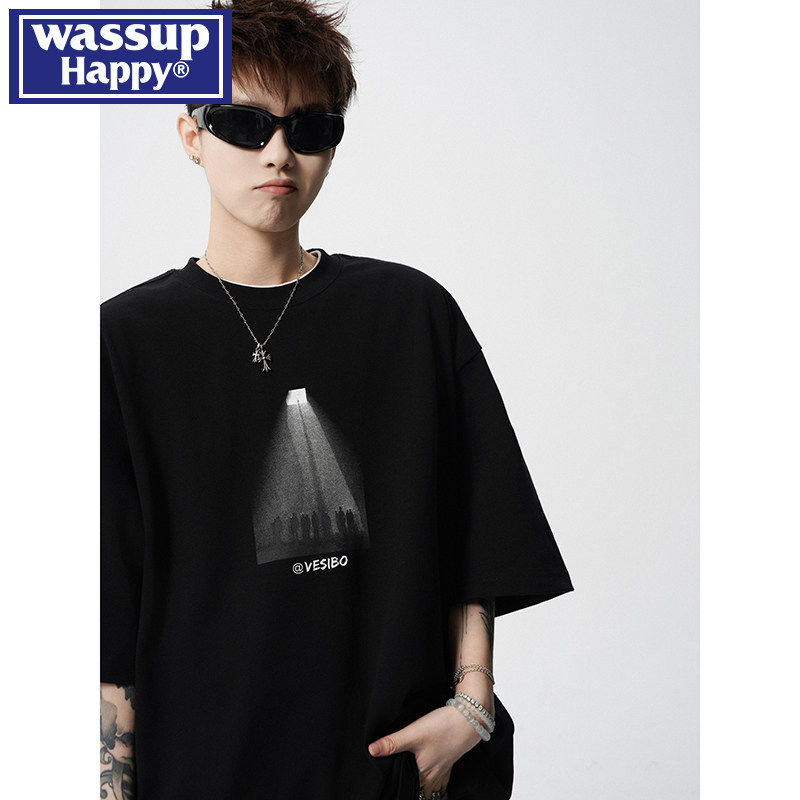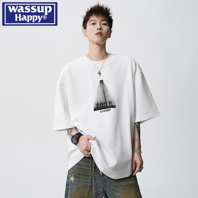 wassup happy重磅短袖t恤男夏季休闲半袖上衣潮流百搭情侣体恤衫