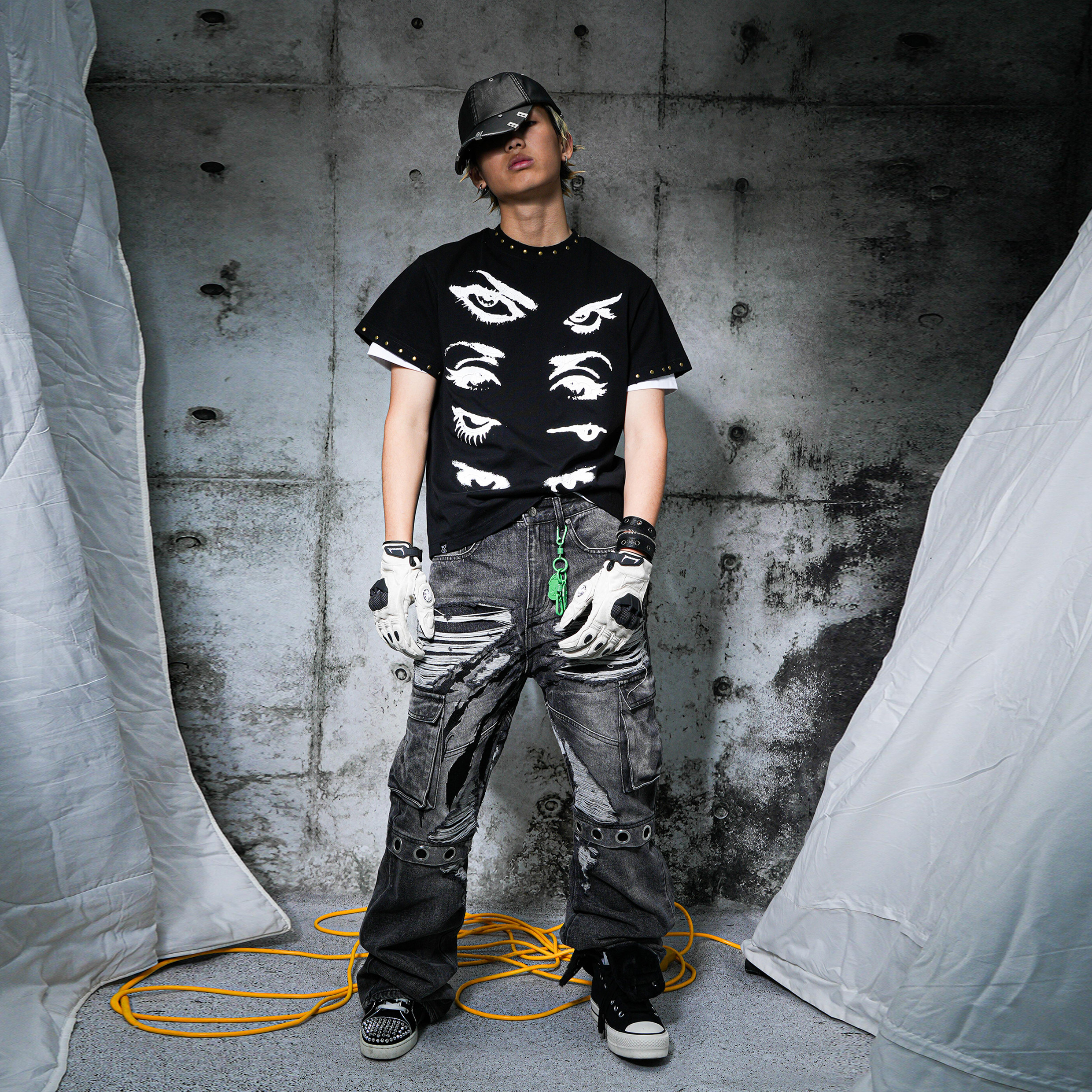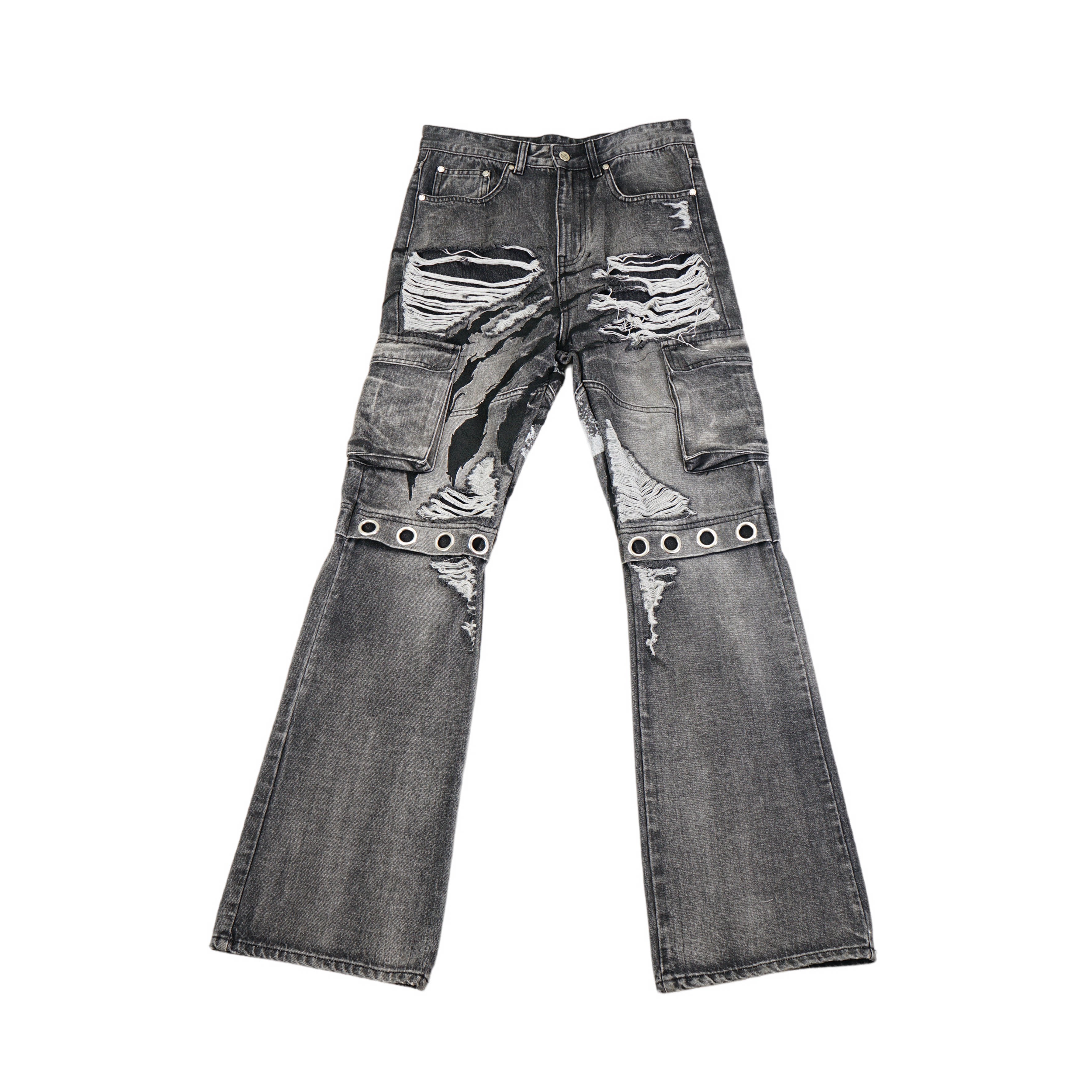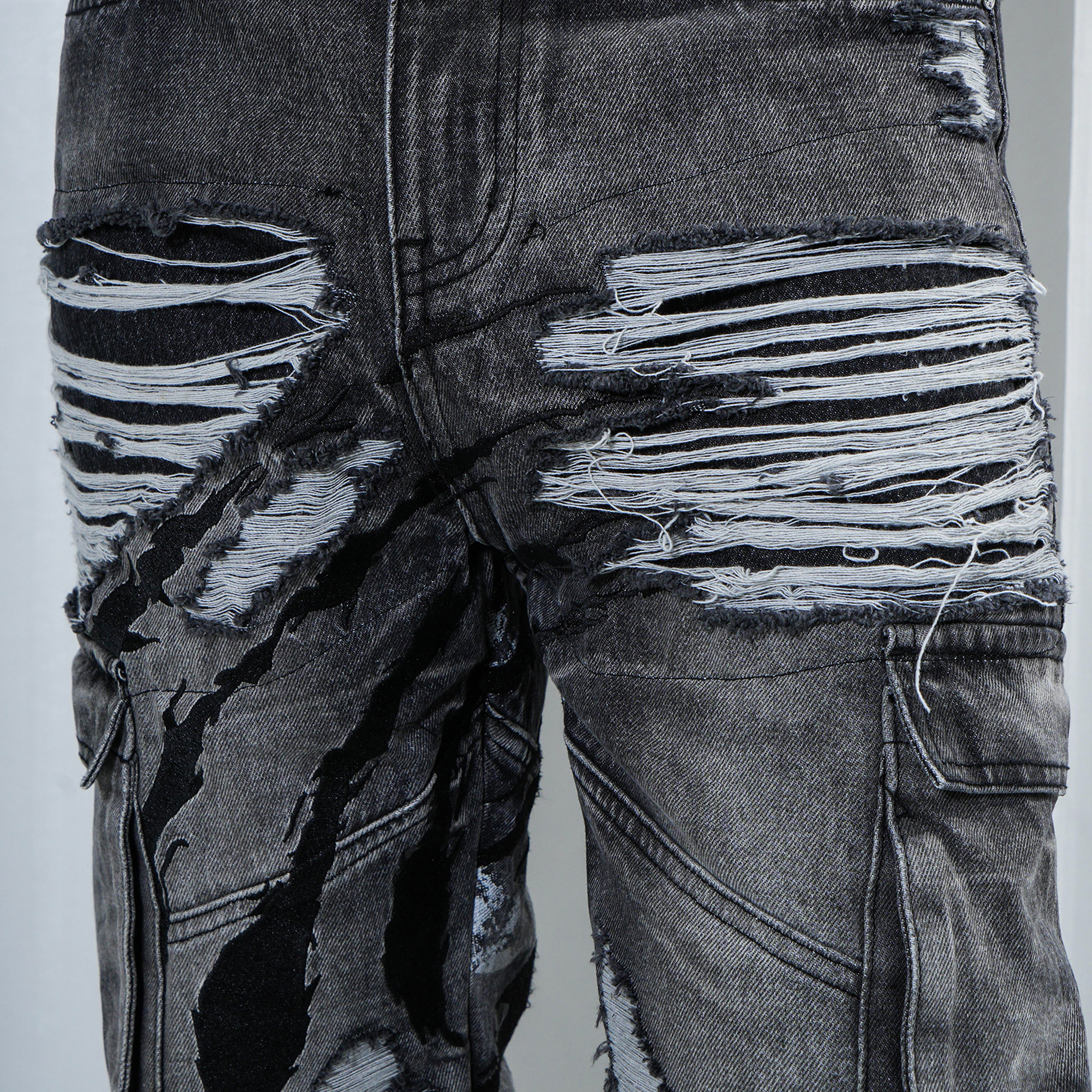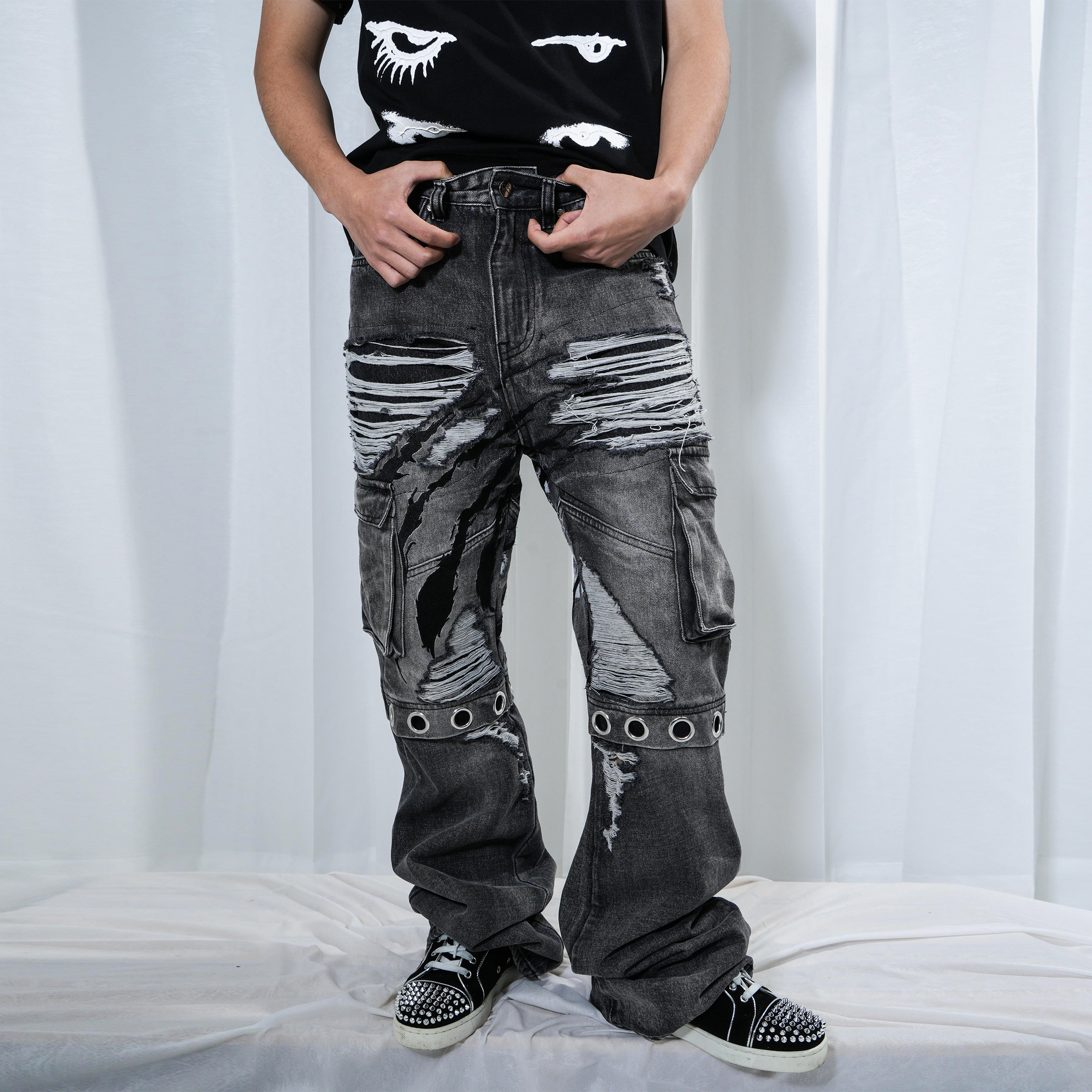 vinkid(云梯)撕裂重工牛仔裤 美式潮流小众国潮高街百搭长裤