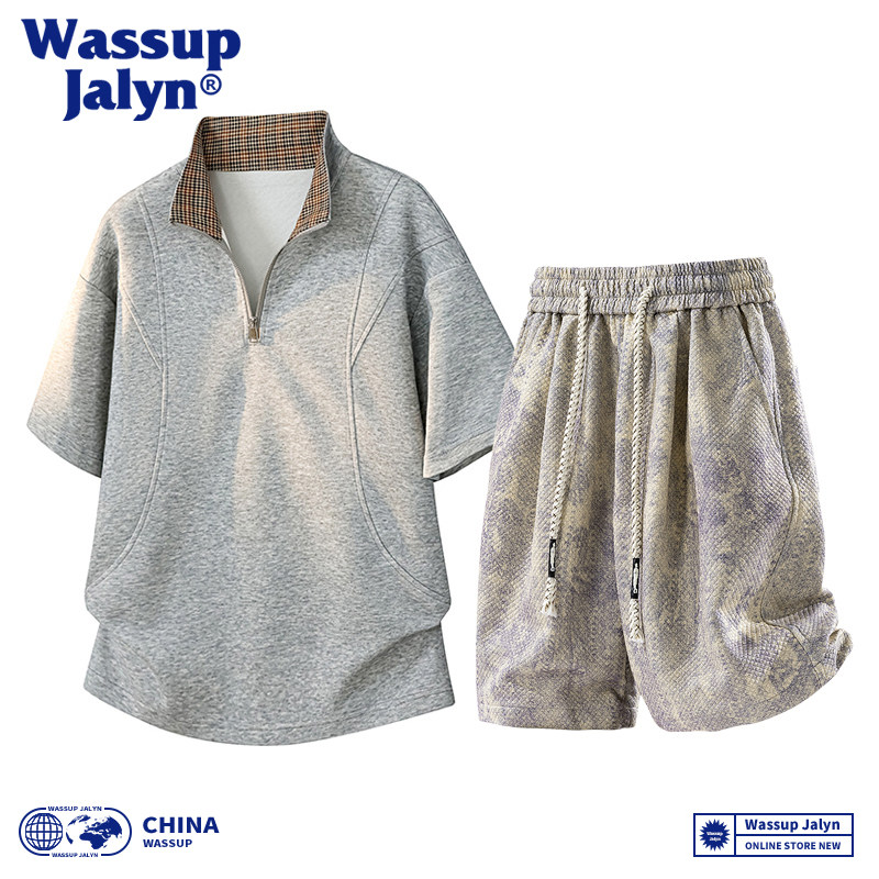 WASSUP JALYN美式短袖短裤套装男款夏季潮痞帅宽松休闲运动套装男
