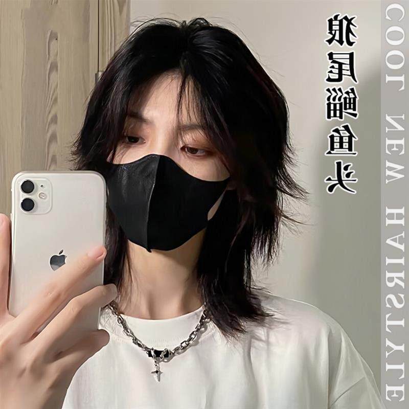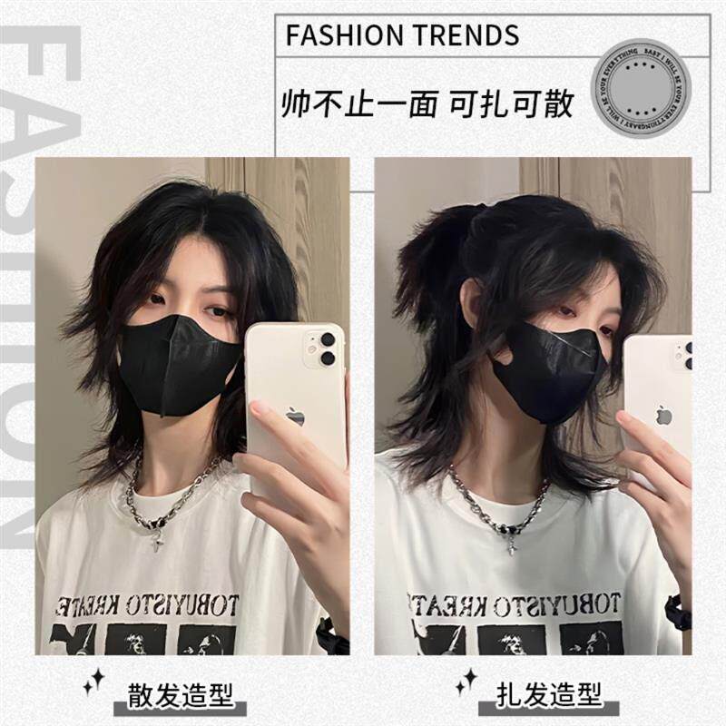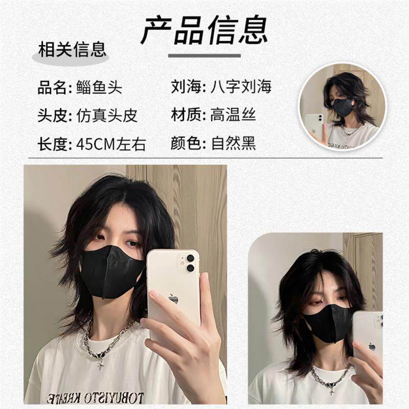 鲻鱼头假发男短发日系时尚帅气狼尾学生日常半扎中分武士头全头套