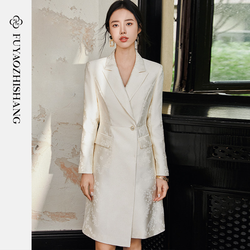 --------------------- FUYAO扶摇 新中式提花连衣裙女长袖西装裙斜纹肌理感国风浮雕裙子 【原售价】699元 【现售价】615元 【推荐理由】