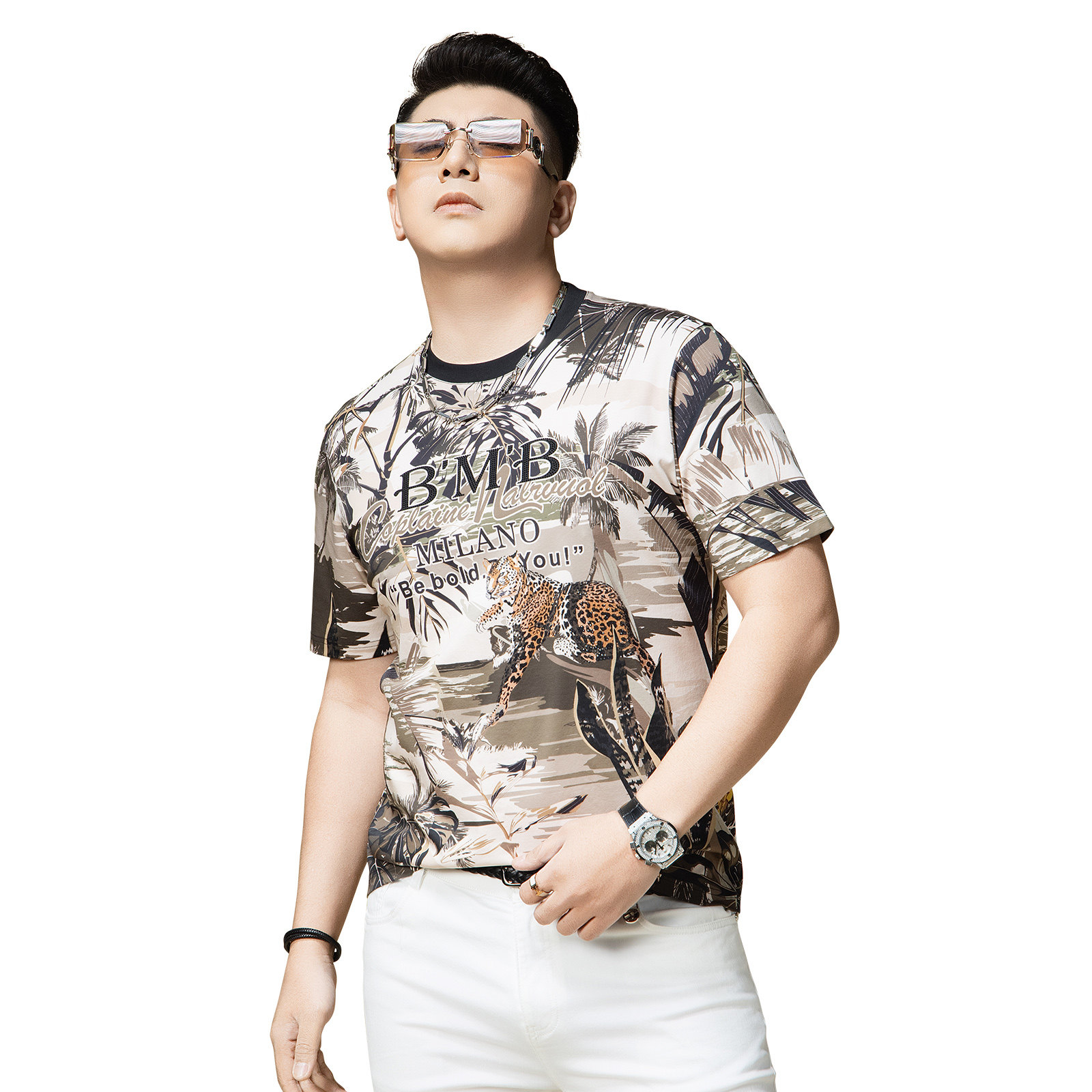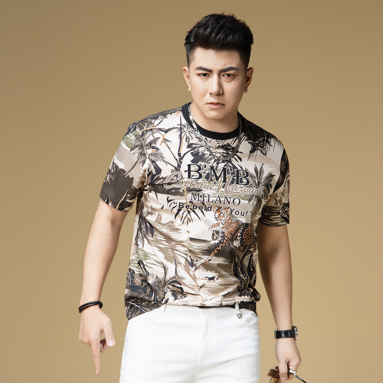 BM男士t恤高端丝光棉短袖男款2026新款潮牌猎豹印花烫钻夏季上衣