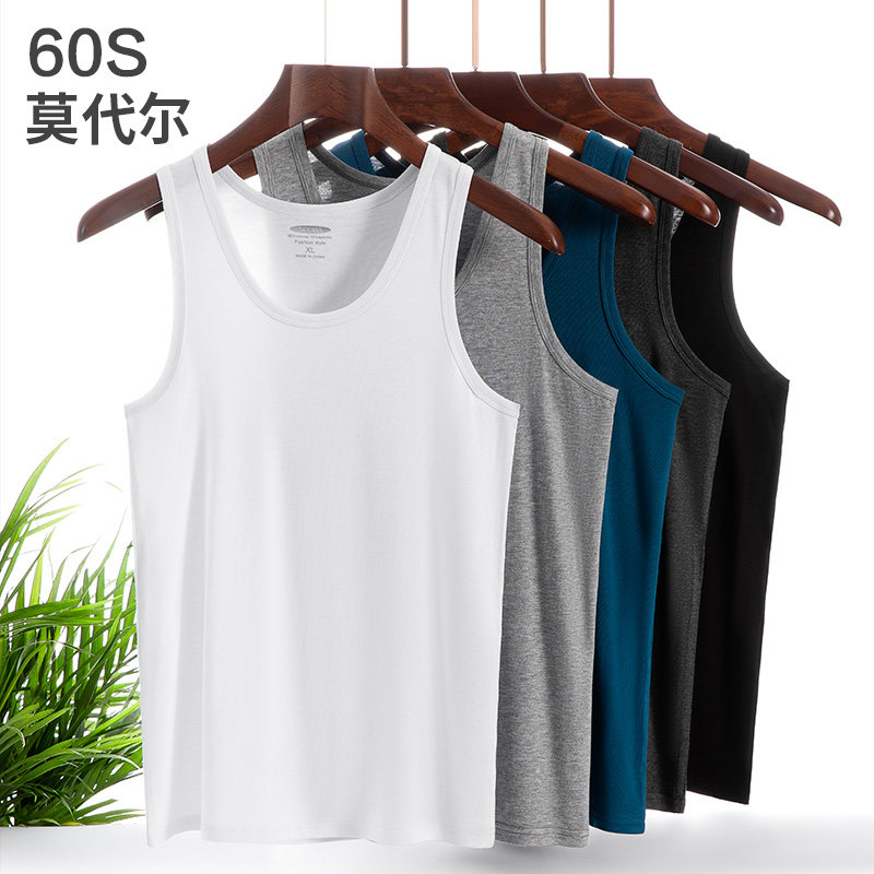 莫代尔男背心夏季冰丝棉感跨栏运动内穿春秋打底无袖白色老头汗衫