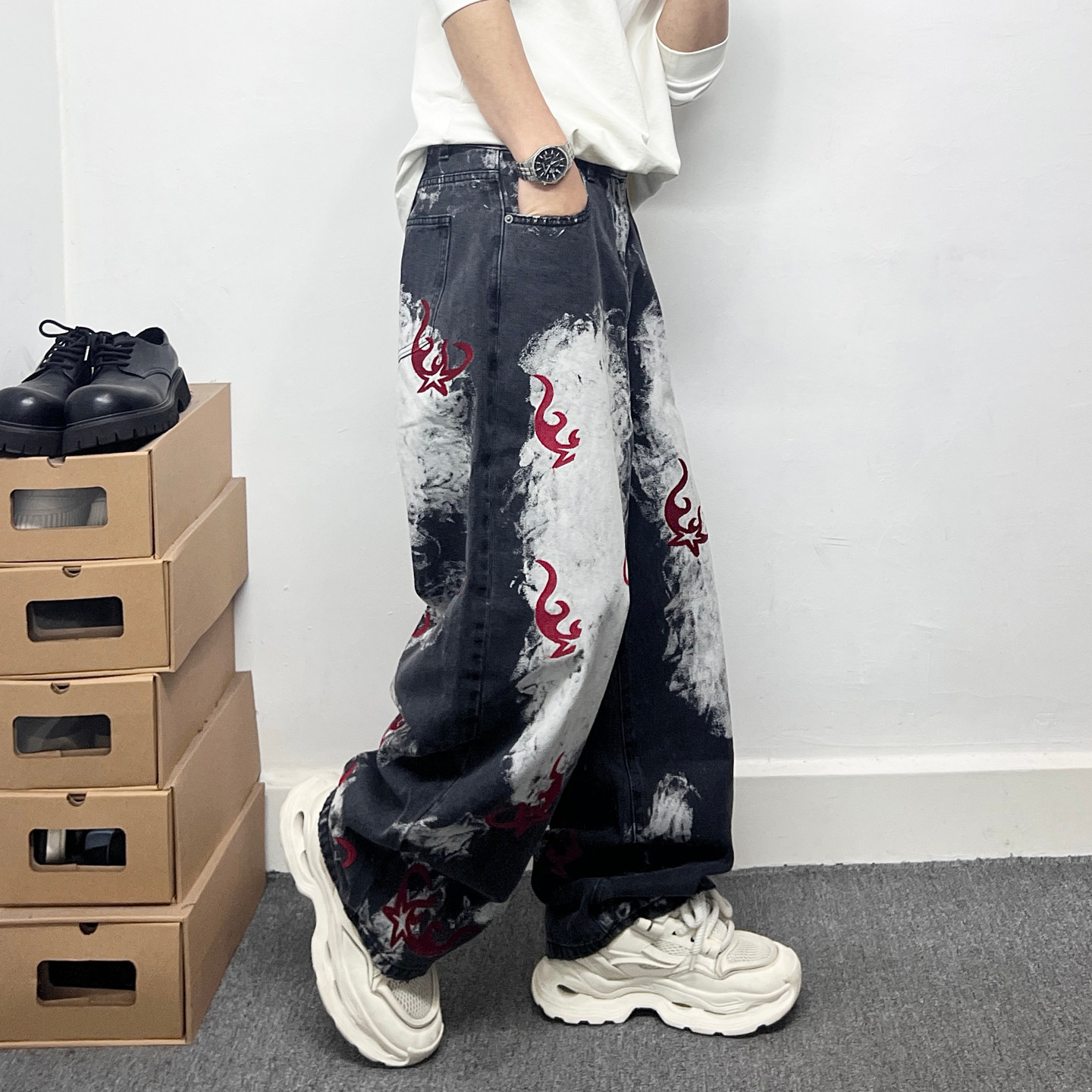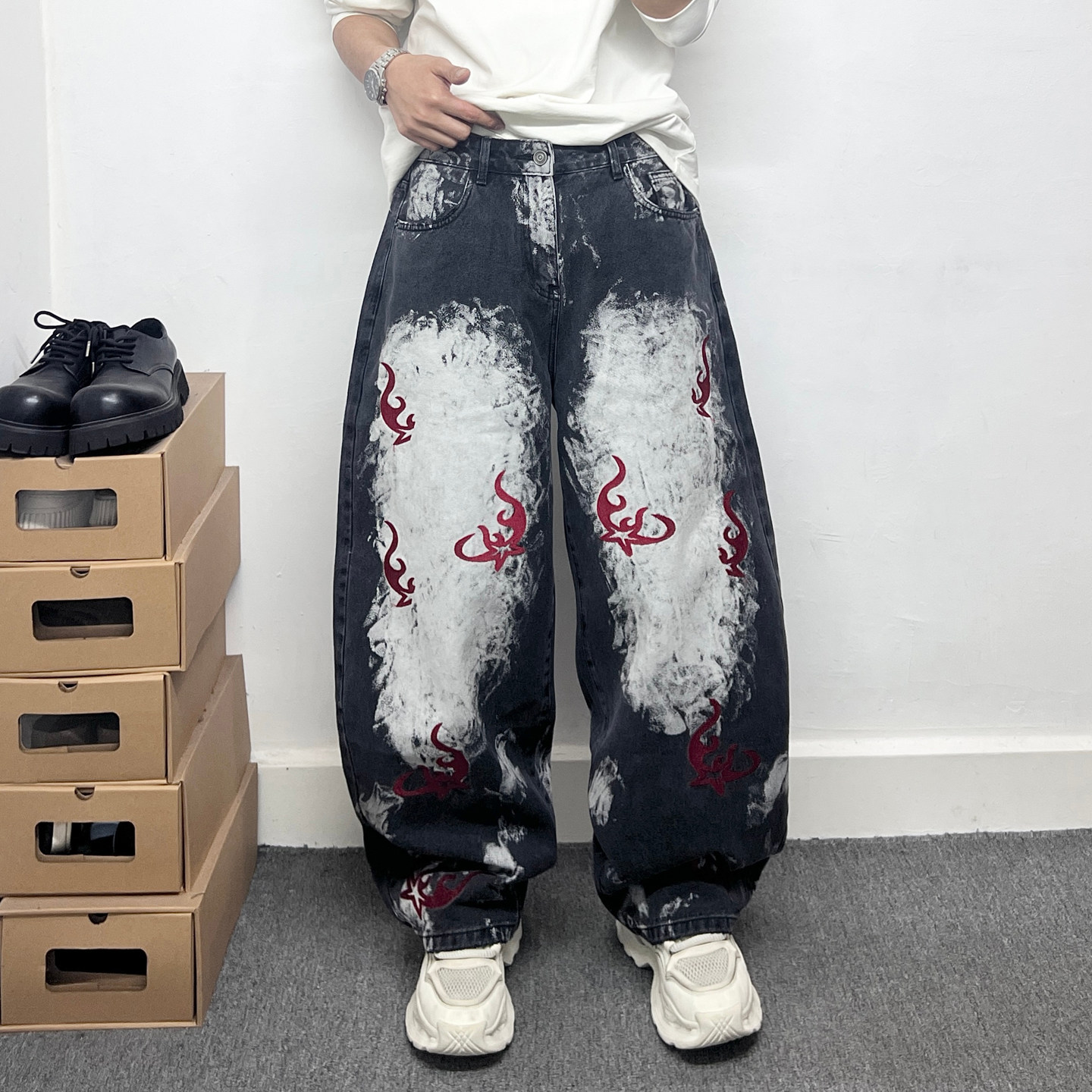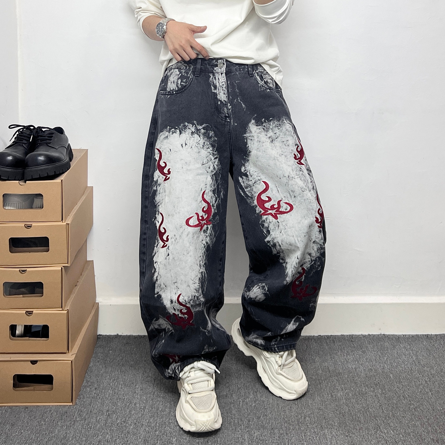 --------------------- 美式复古国潮图腾刺绣弯刀牛仔裤男是大码宽松做旧潮牌直筒长裤子 【原售价】266元 【现售价】239元 【推荐理由】