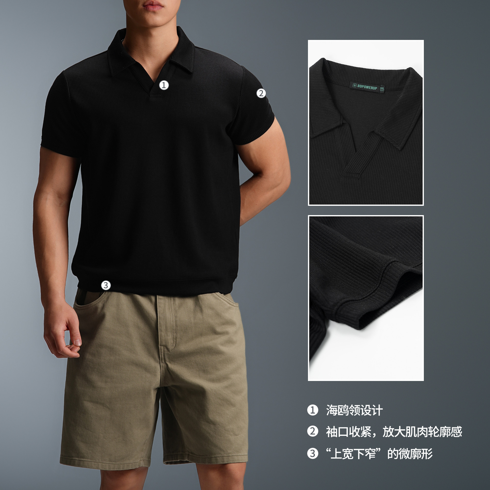 --------------------- BD老钱风海鸥领短袖Polo衫男夏季美式休闲运动健身四分袖爆袖t恤 【原售价】319元 【现售价】159元 【推荐理由】