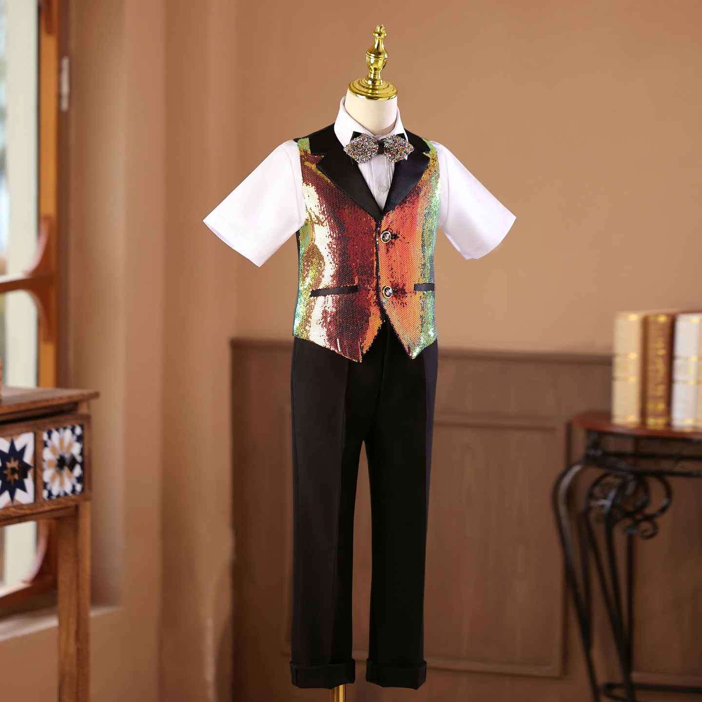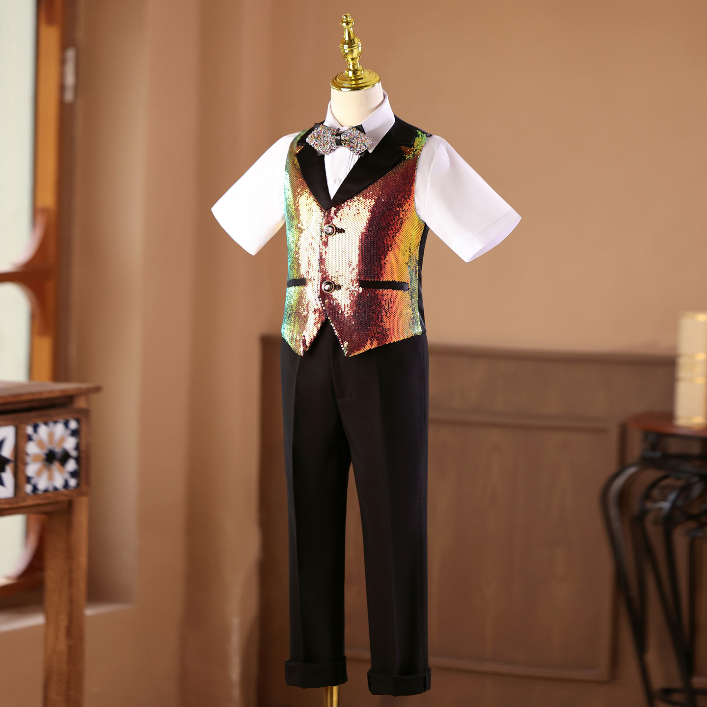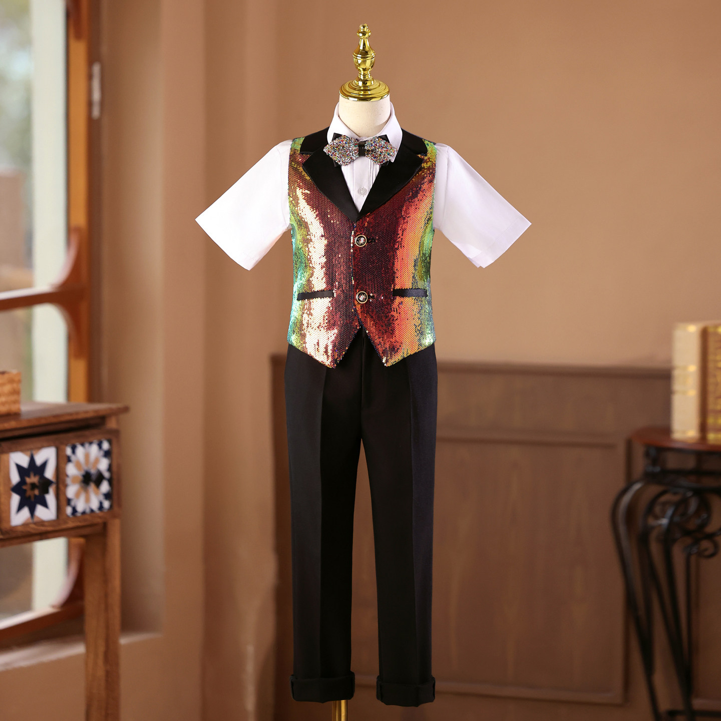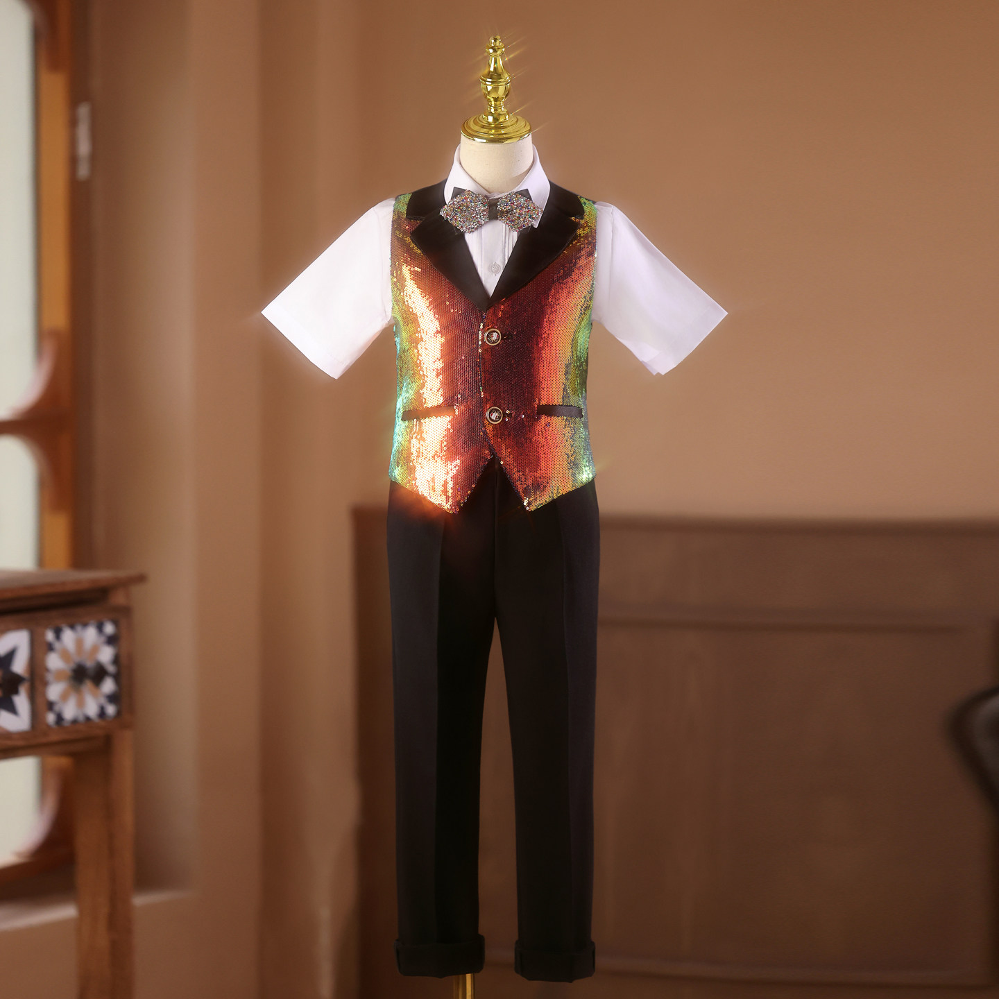 男童礼服幻彩亮片超闪生日唱歌走秀主持人表演潮服男孩钢琴演出服
