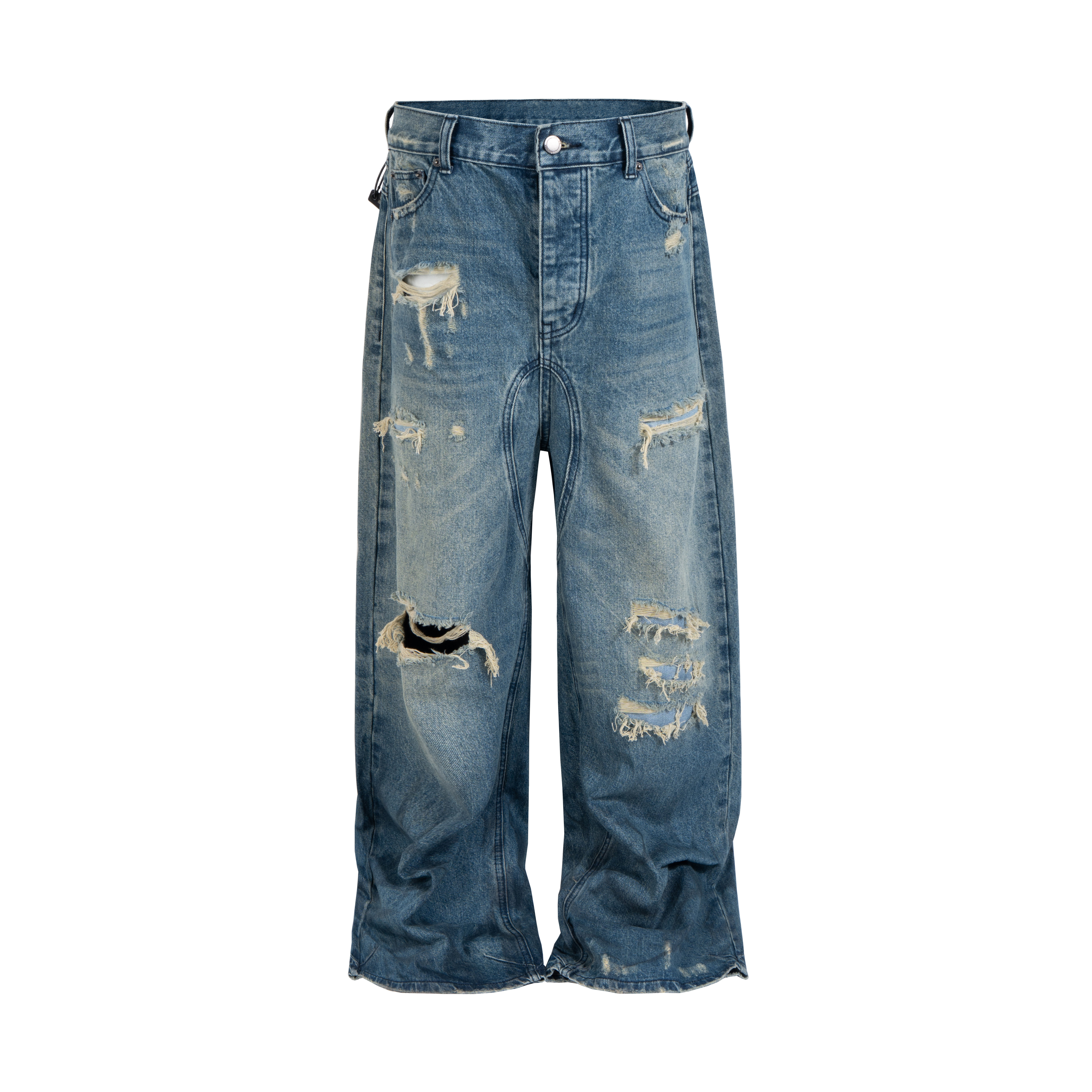 --------------------- YIZILINGF 小众街头做旧水洗蓝破洞牛仔裤男女个性宽松直筒阔腿裤 【原售价】268元 【现售价】235元 【推荐理由】