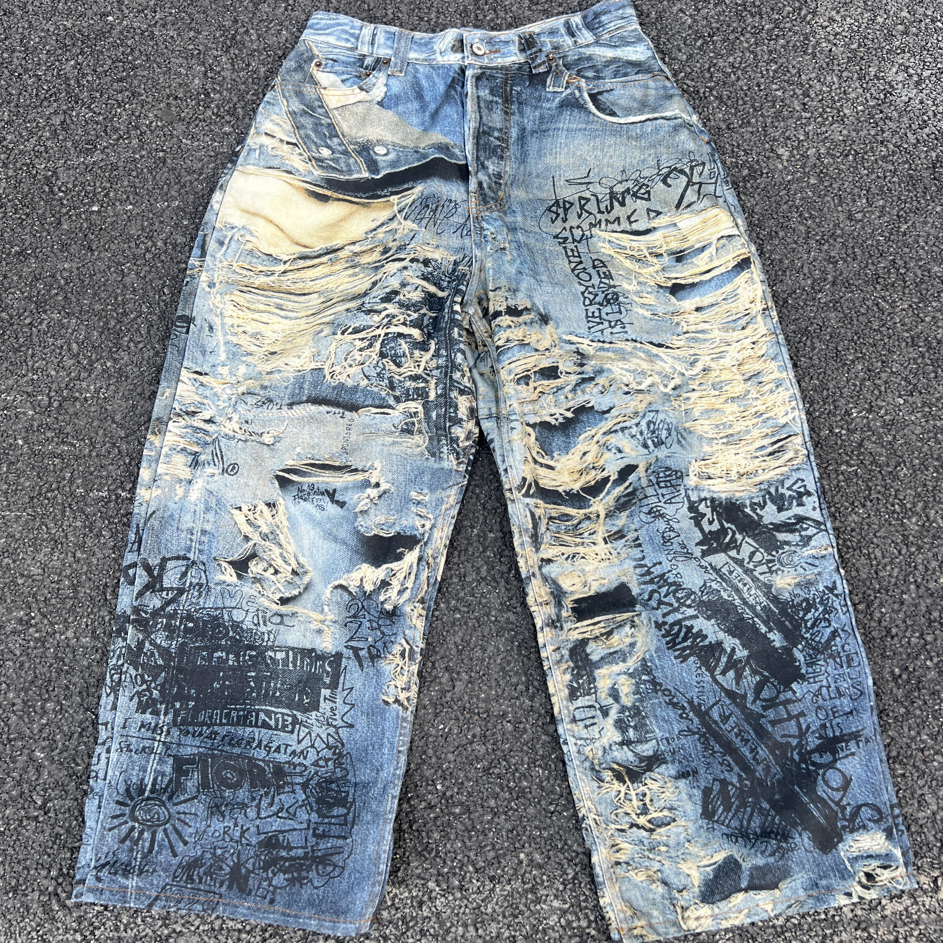 --------------------- YIZILINGF 美式街头小众破洞撕裂错视觉3D打印牛仔裤个性长裤子 【原售价】228元 【现售价】200元 【推荐理由】