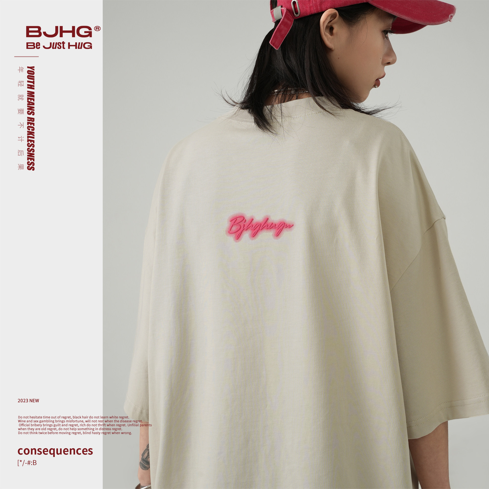 --------------------- 【霓虹1.0】BJHG不计后果美式复古纯棉短袖男夏潮牌宽松情侣T恤女 【原售价】159元 【现售价】129元 【推荐理由】