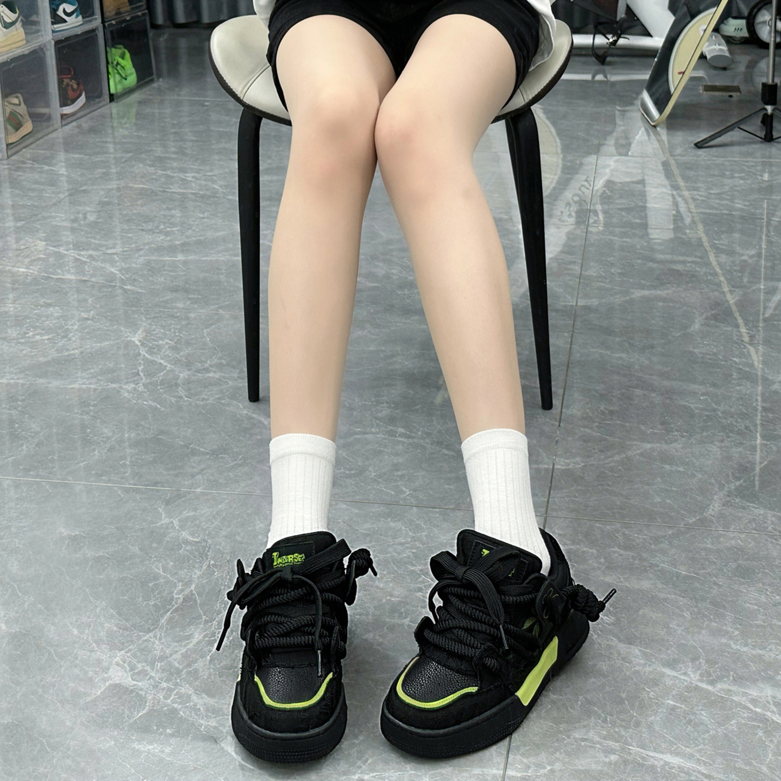 易玛仕破坏风系列街头小黑鞋厚底增高面包鞋休闲板鞋潮鞋男女同款