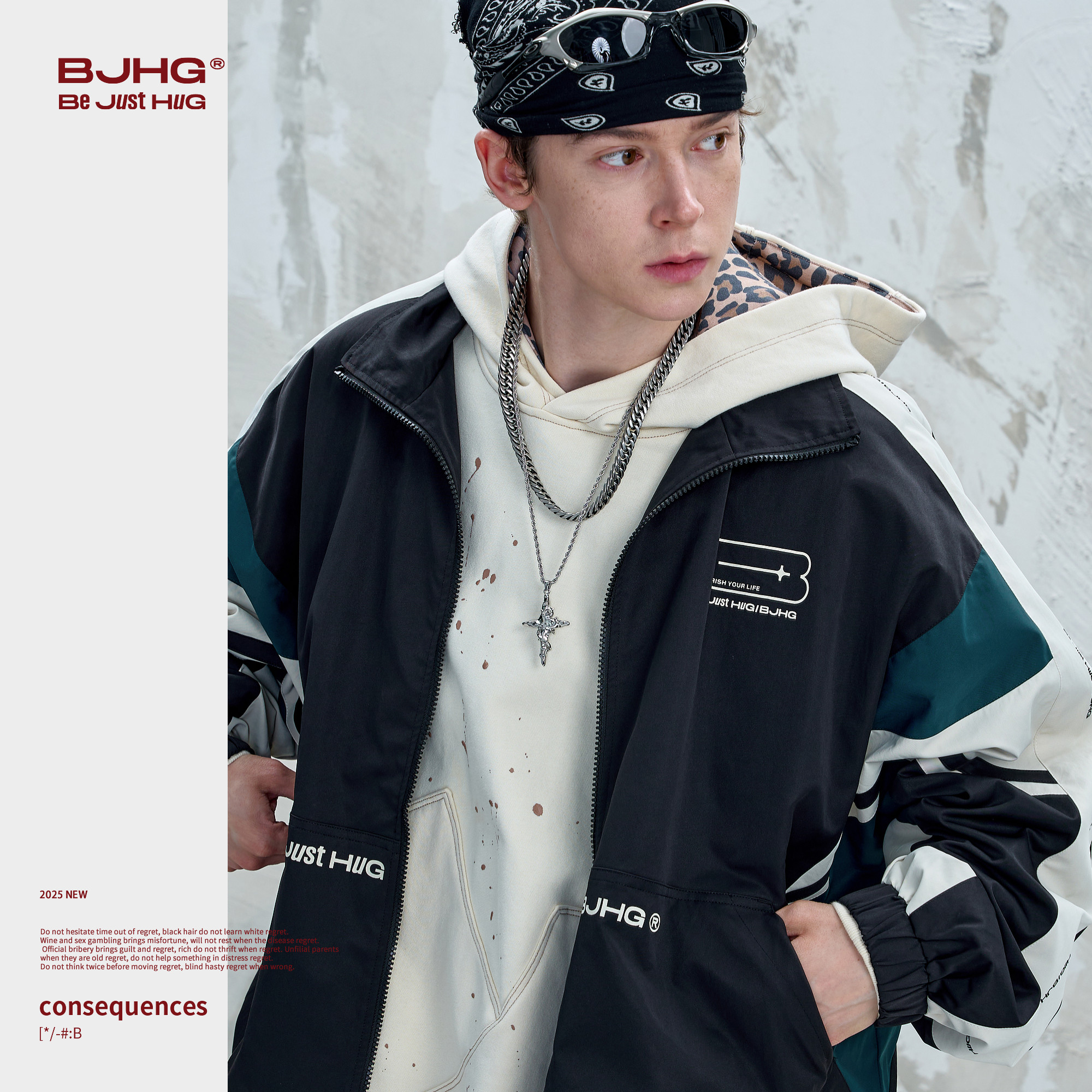BJHG不计后果运动外套男款春季新款美式撞色潮牌情侣装夹克外套女
