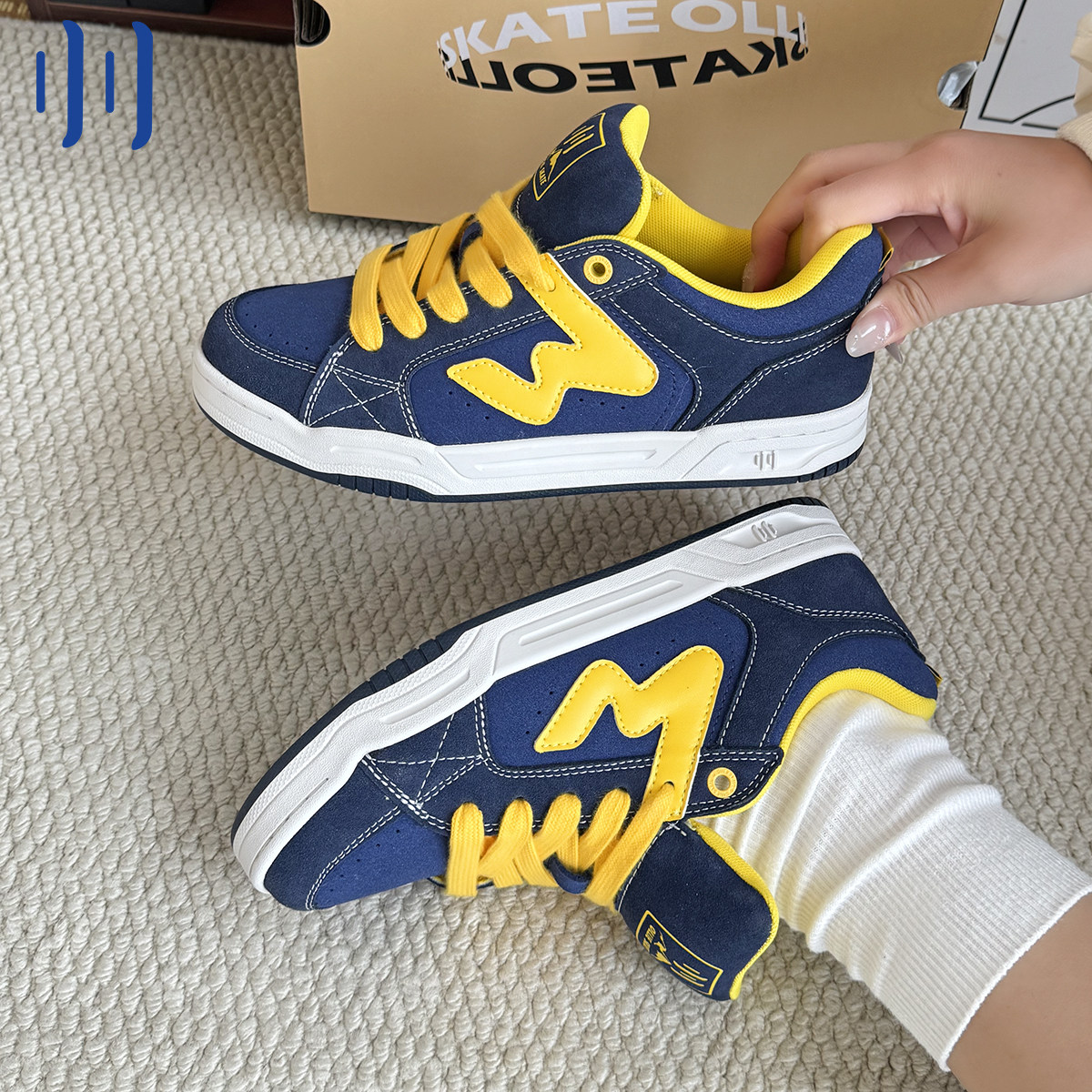 顽刻ollieskate蓝黄拼色W系列复古休闲低帮男女国潮冷粘滑板鞋