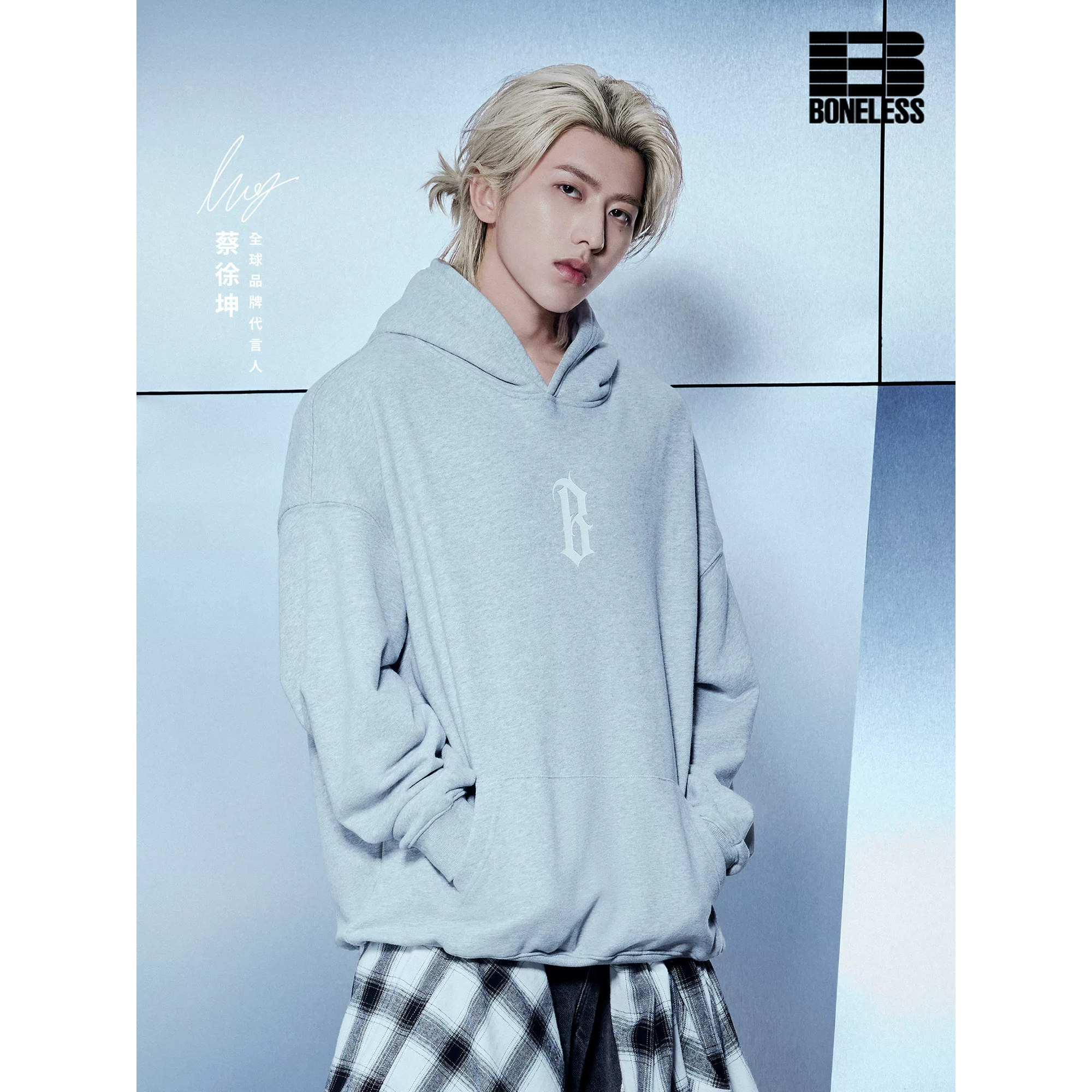 【蔡徐坤同款】BONELESS基础B字胶浆印花连帽卫衣情侣款重磅帽衫