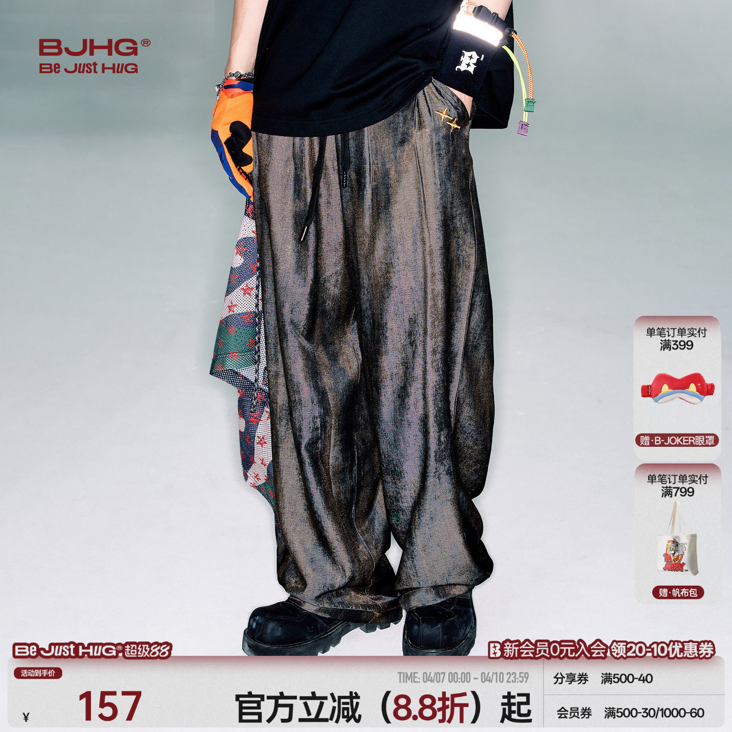 BJHG不计后果金属感透气休闲裤子男款春季复古慵懒垂坠感直筒长裤