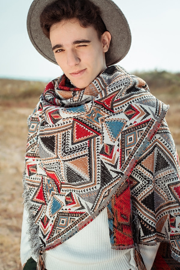 --------------------- 阿叩拉 民族几何图案色织盖毯披肩 山谷少年独立设计师原创男装 【原售价】259元 【现售价】227元 【推荐理由】