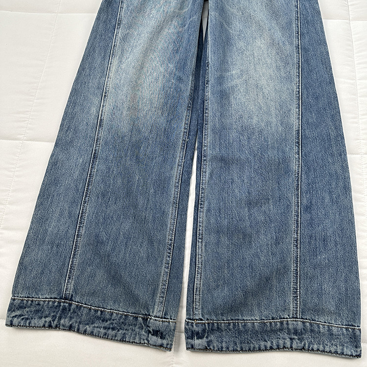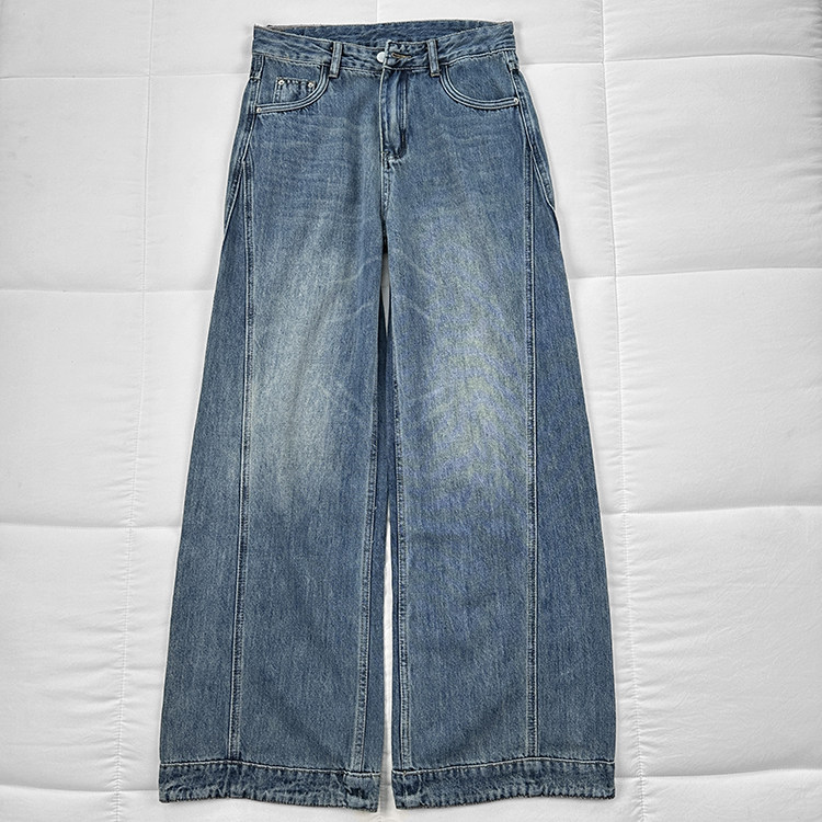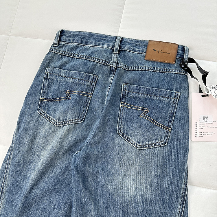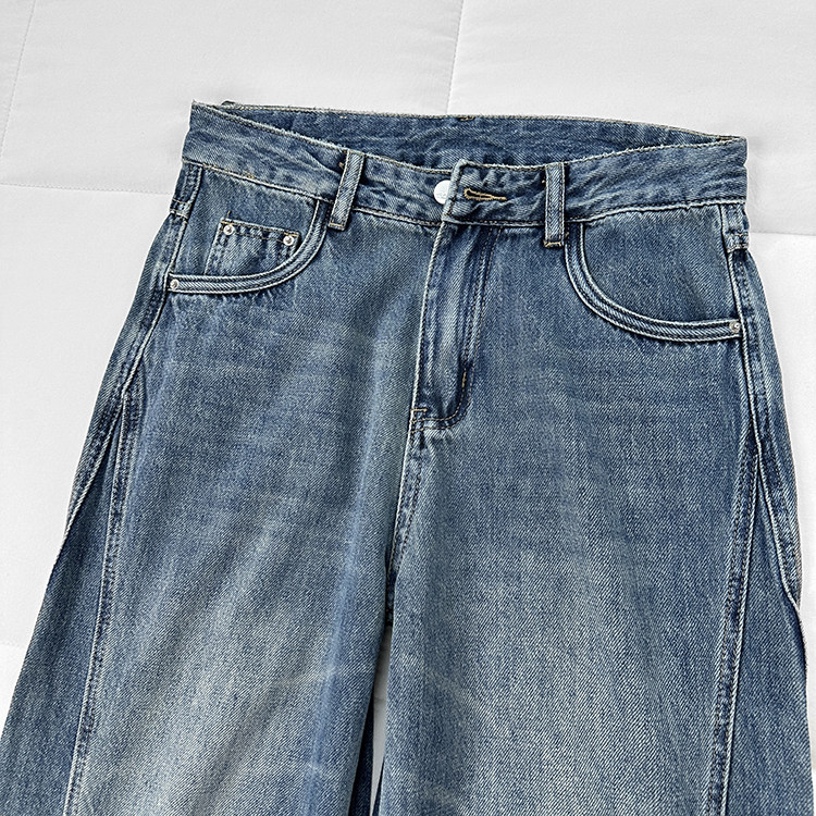 淘宝中山大厂货 美式复古高街解构阔腿裤 韩版休闲百搭水洗高腰牛仔裤