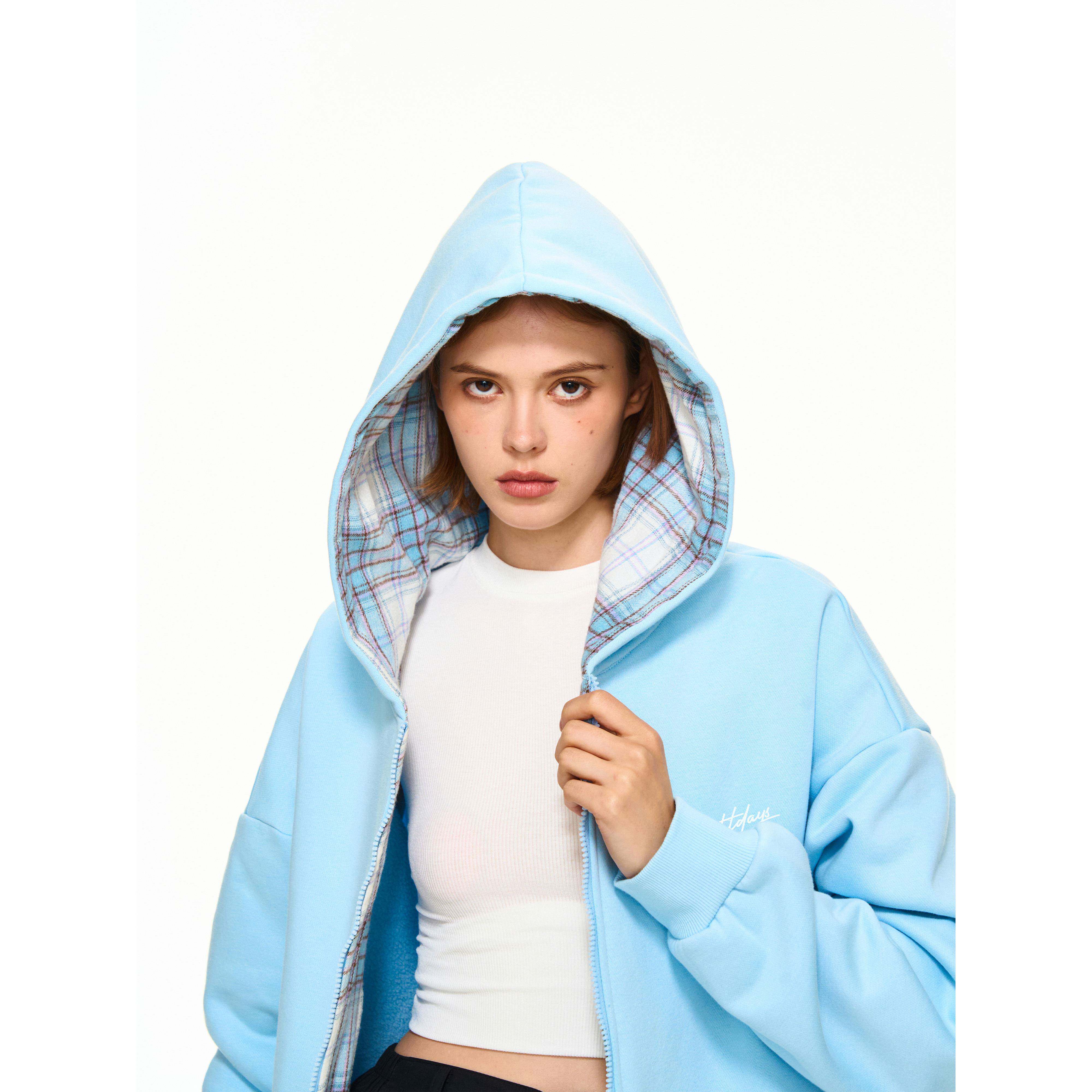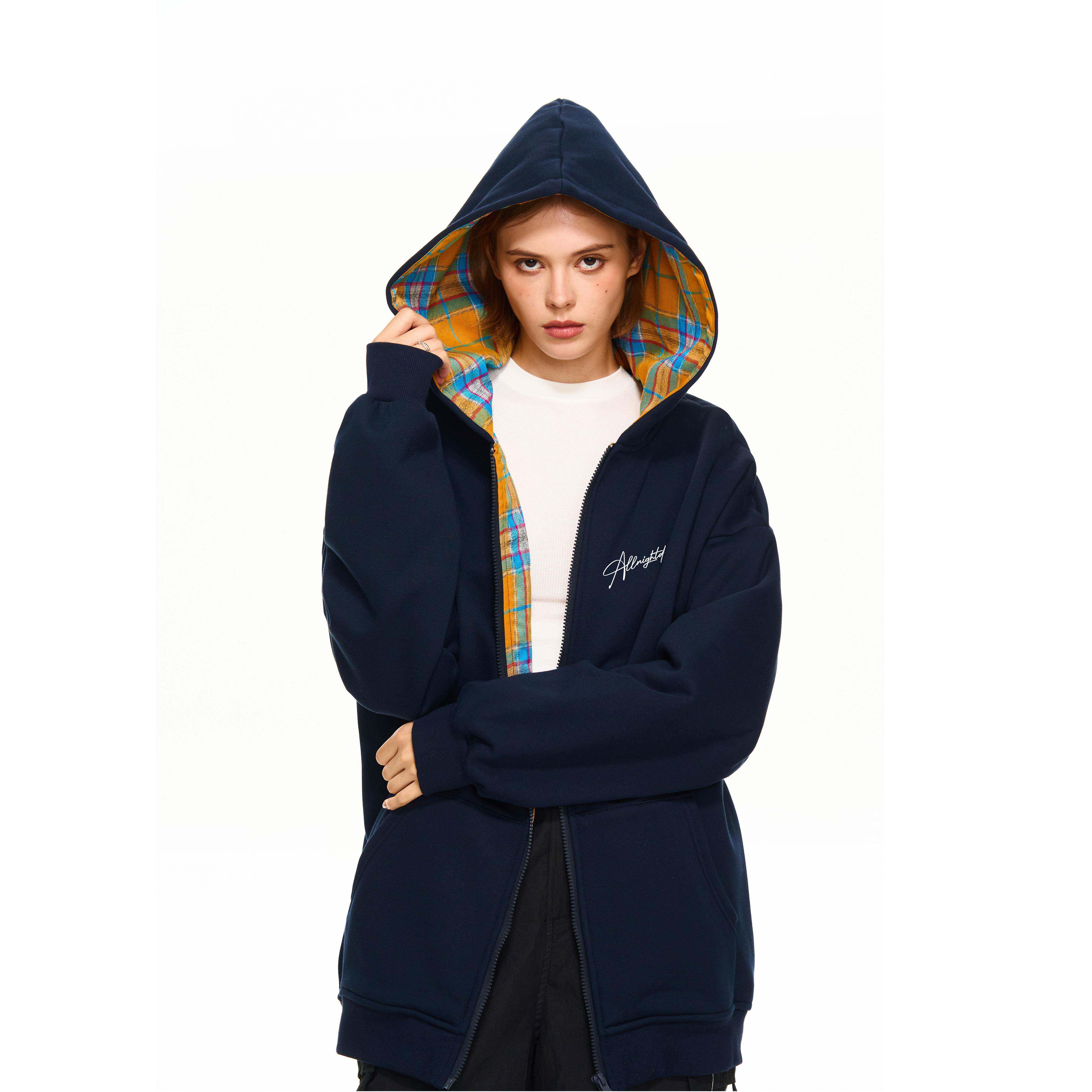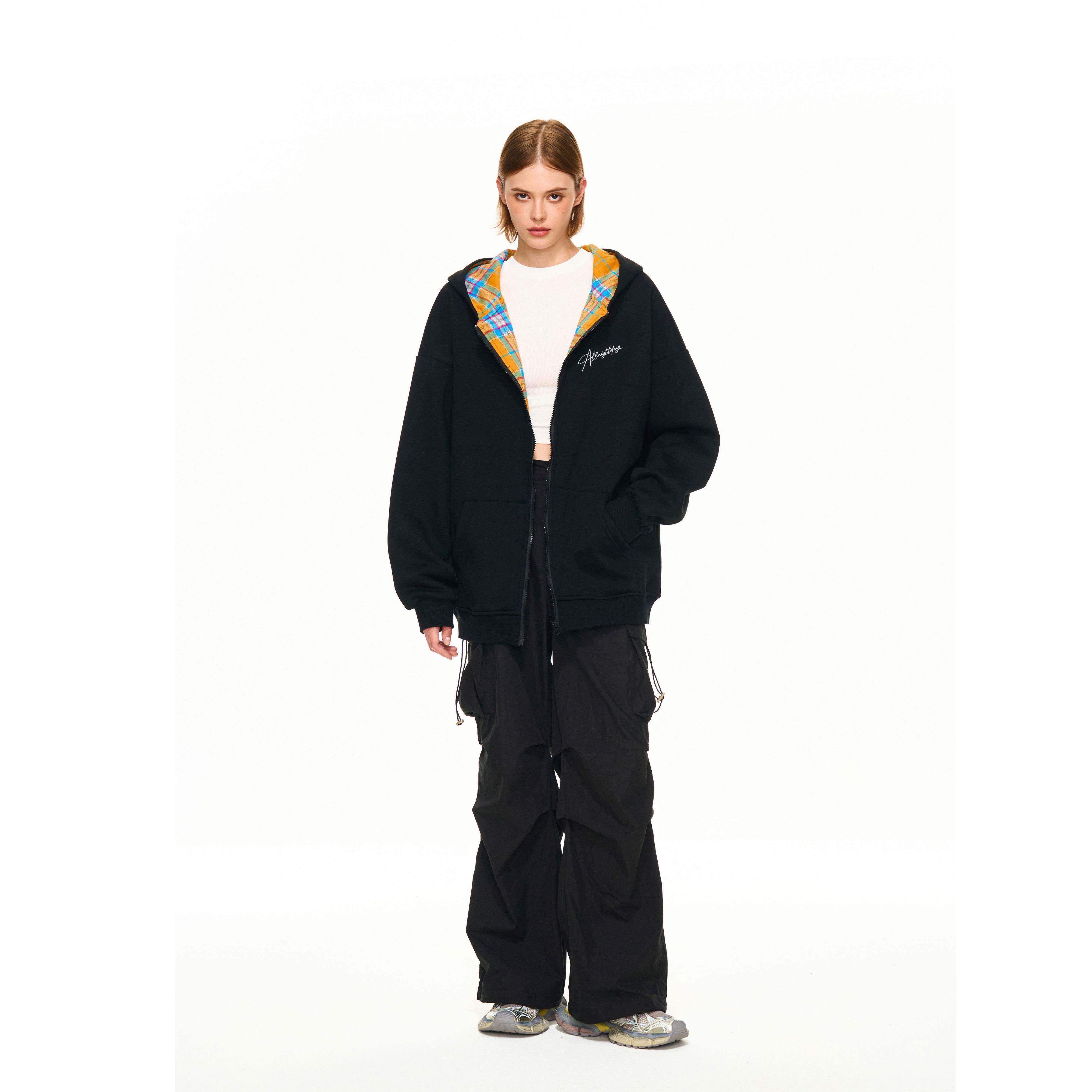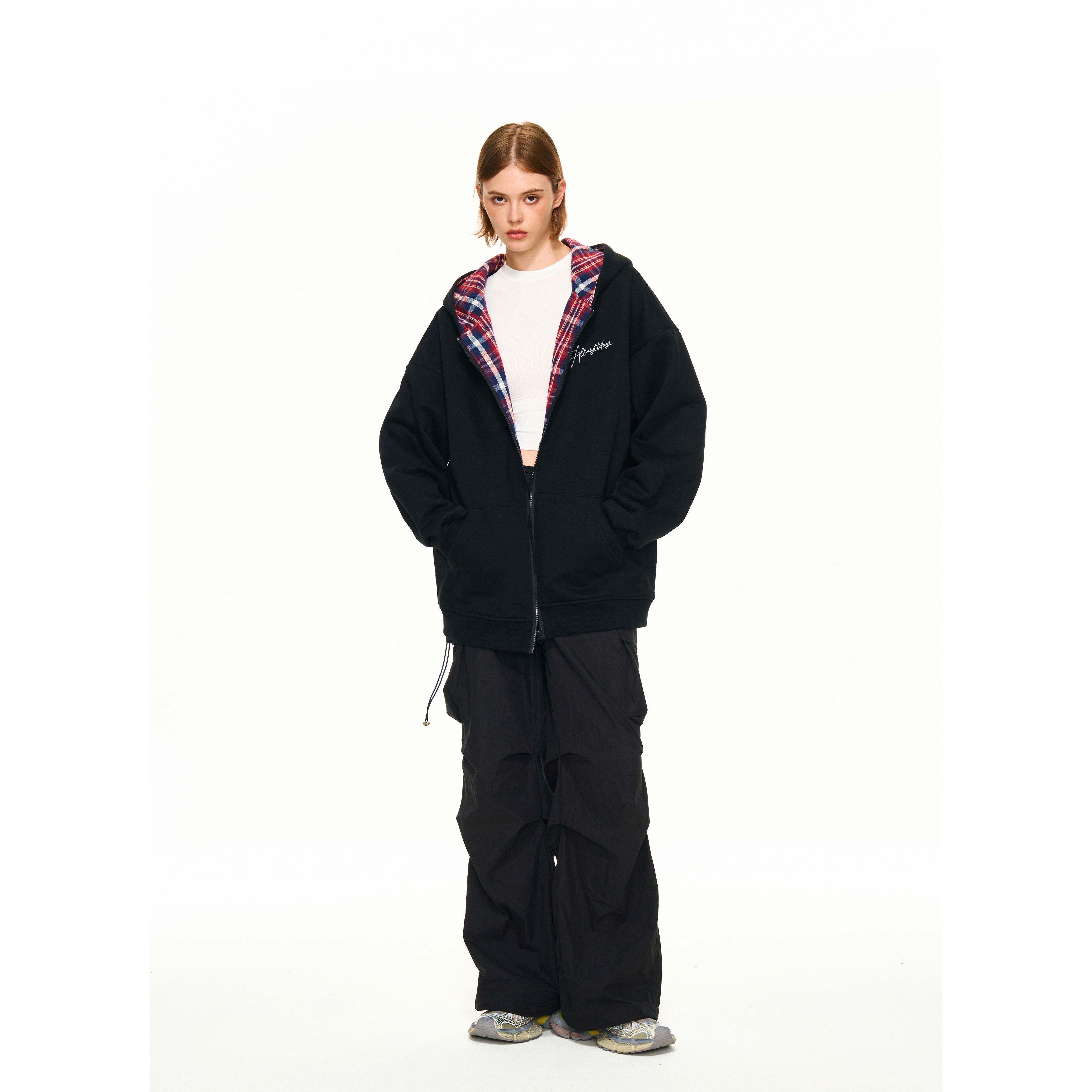 黄子弘凡同款RECOLETA美式覆古运动连帽开衫卫衣格纹情侣春季外套