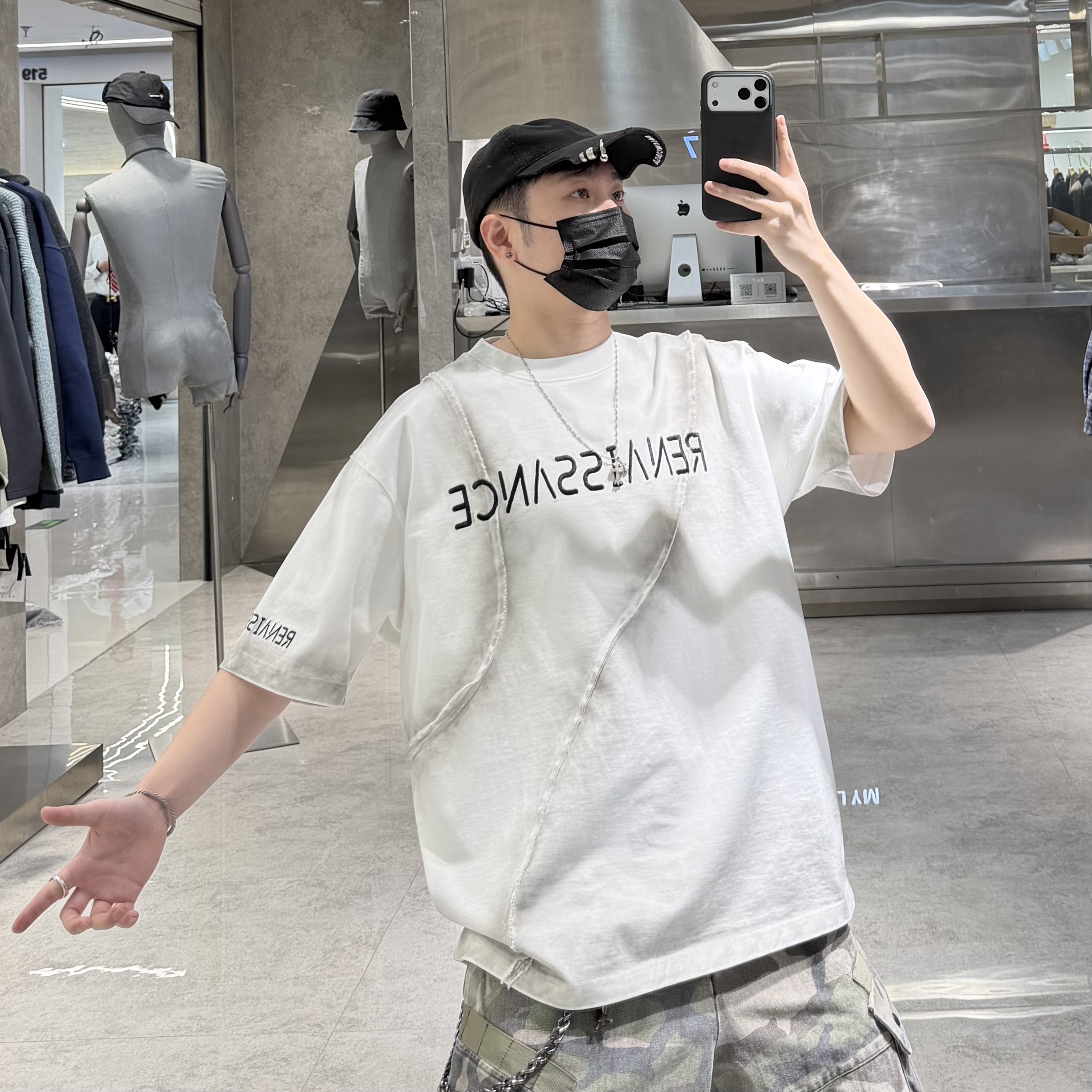 --------------------- 潮牌26春夏重磅短袖T恤男美式巴黎做旧字母刺绣结构宽松青年半袖T 【原售价】289元 【现售价】249元 【推荐理由】