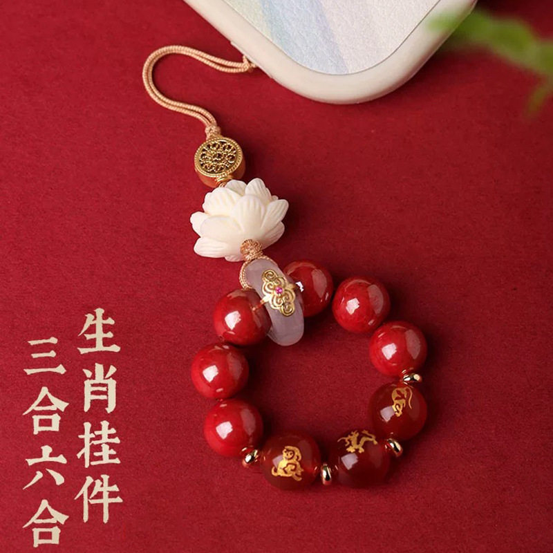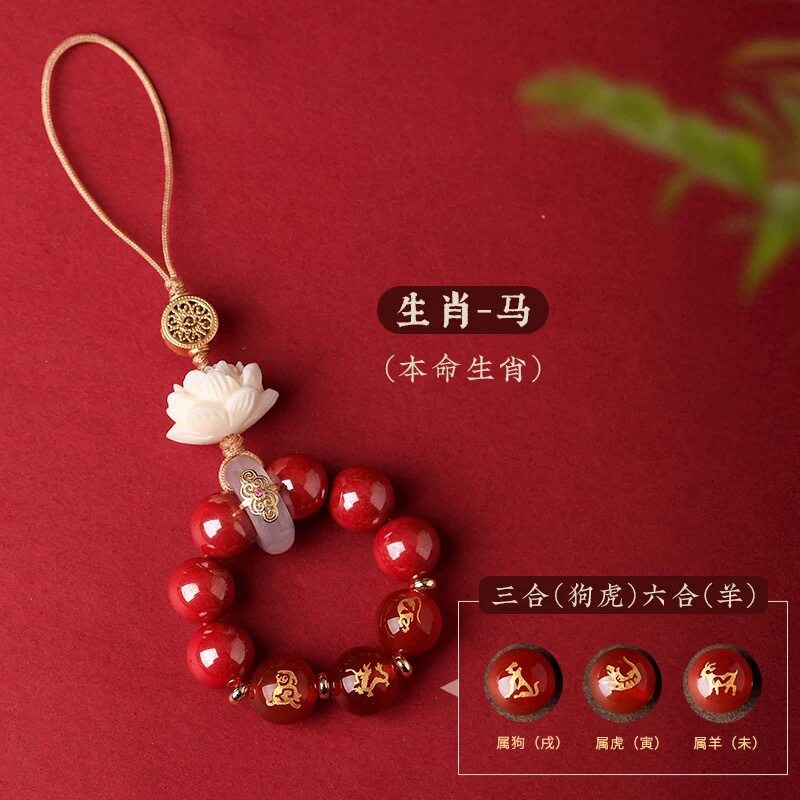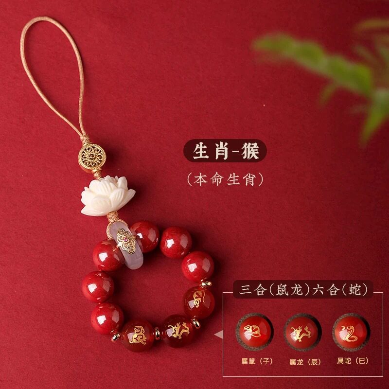 淘宝【普陀山正品】本命年玛瑙十二生肖三合六合手机链朱砂招财钥匙扣