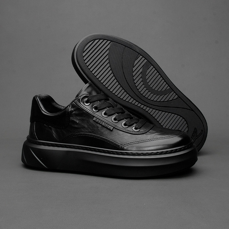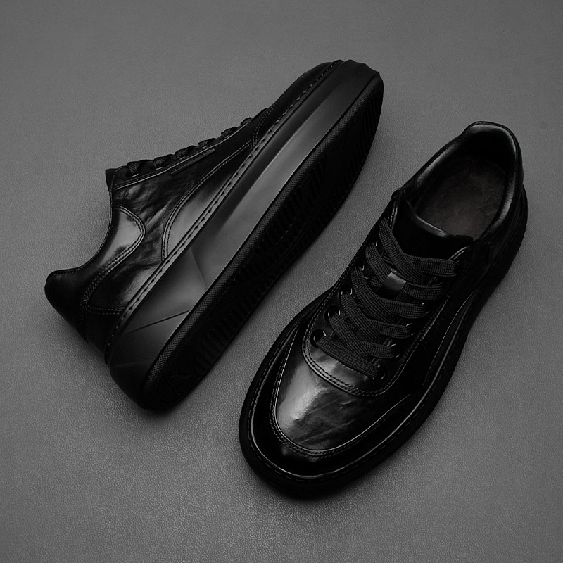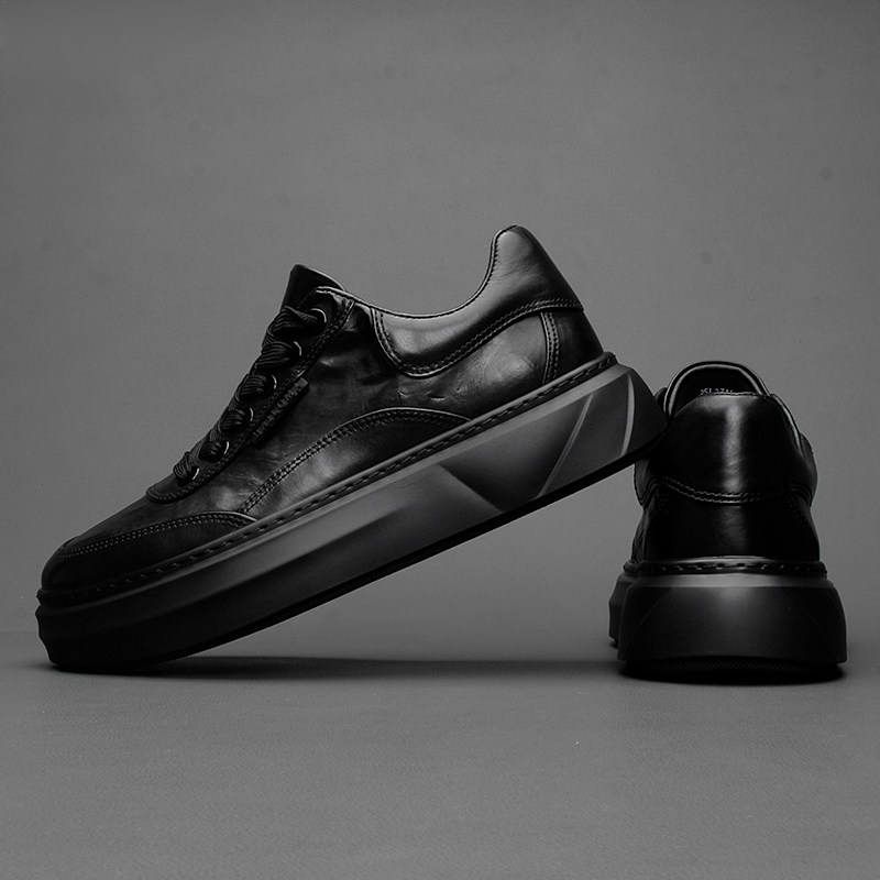 欧洲站男鞋真皮时尚休闲鞋男士百搭黑色皮鞋头层牛皮潮鞋厚底增高