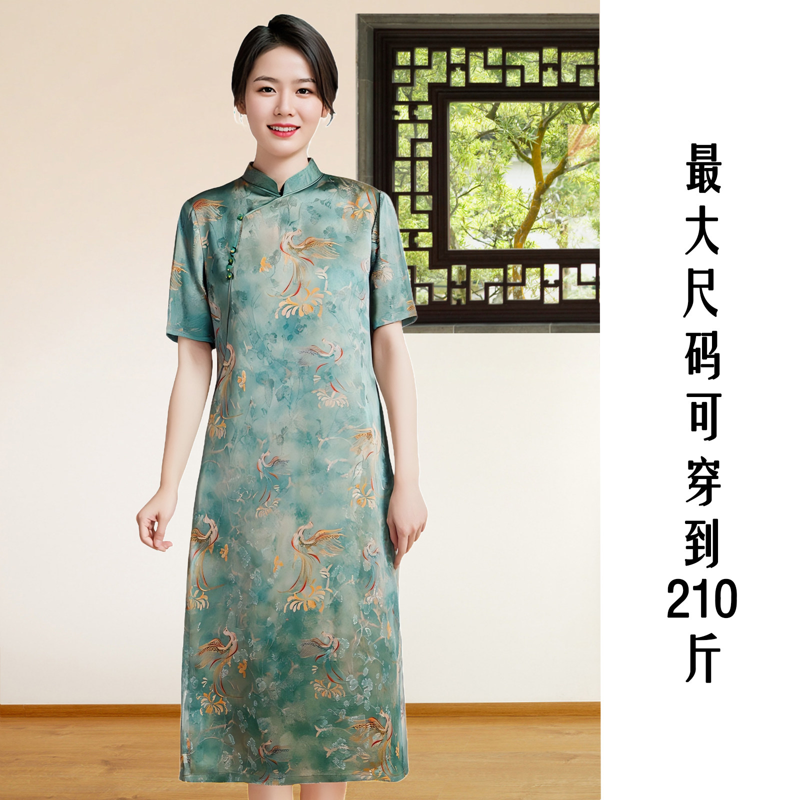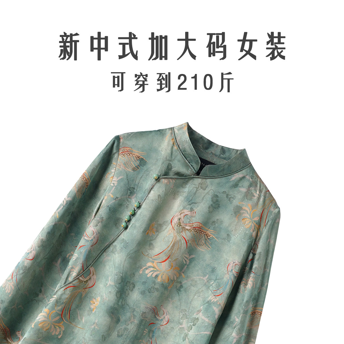 淘宝TENAX中年妈妈宽松大码春秋新款新中式国风桑蚕丝长袖连衣裙