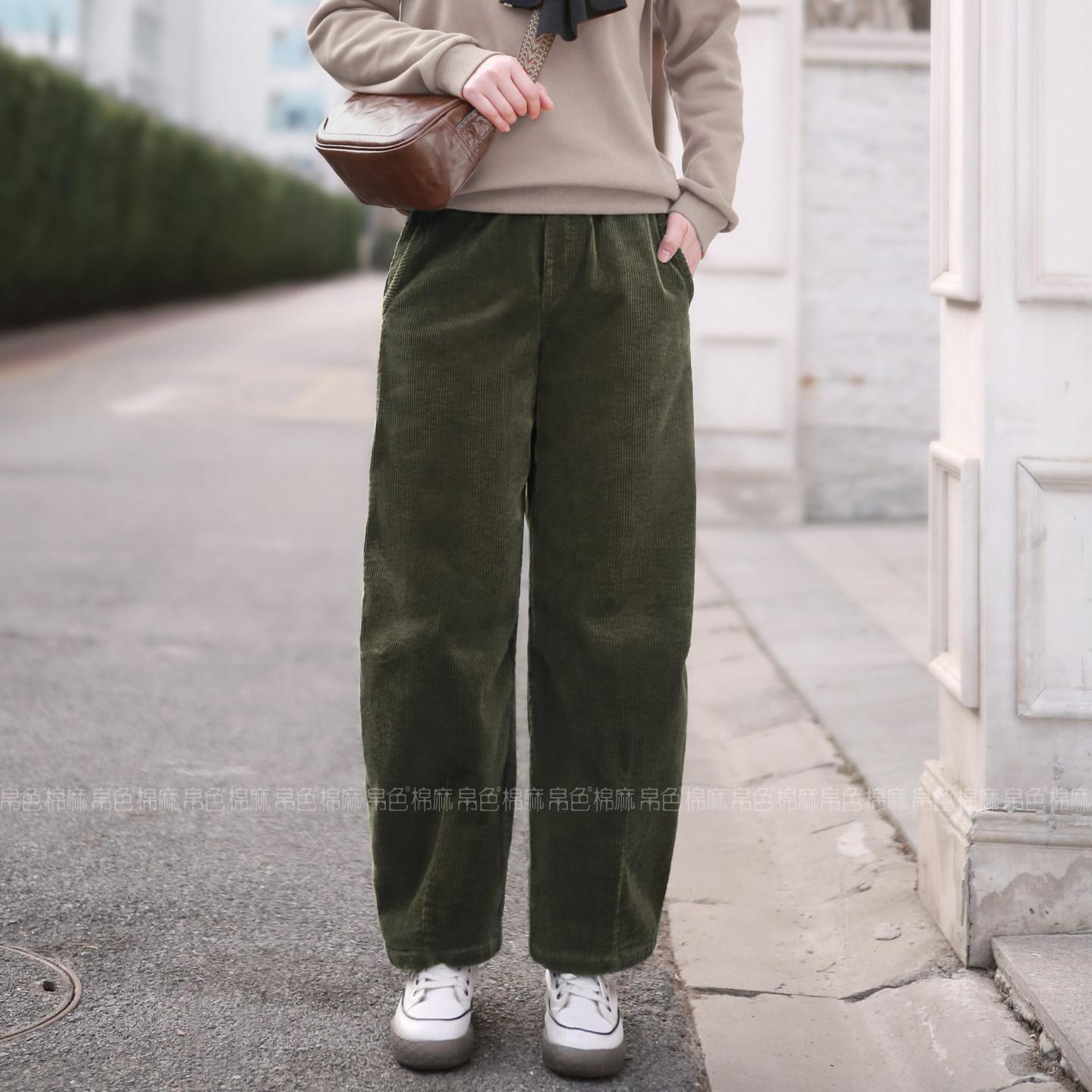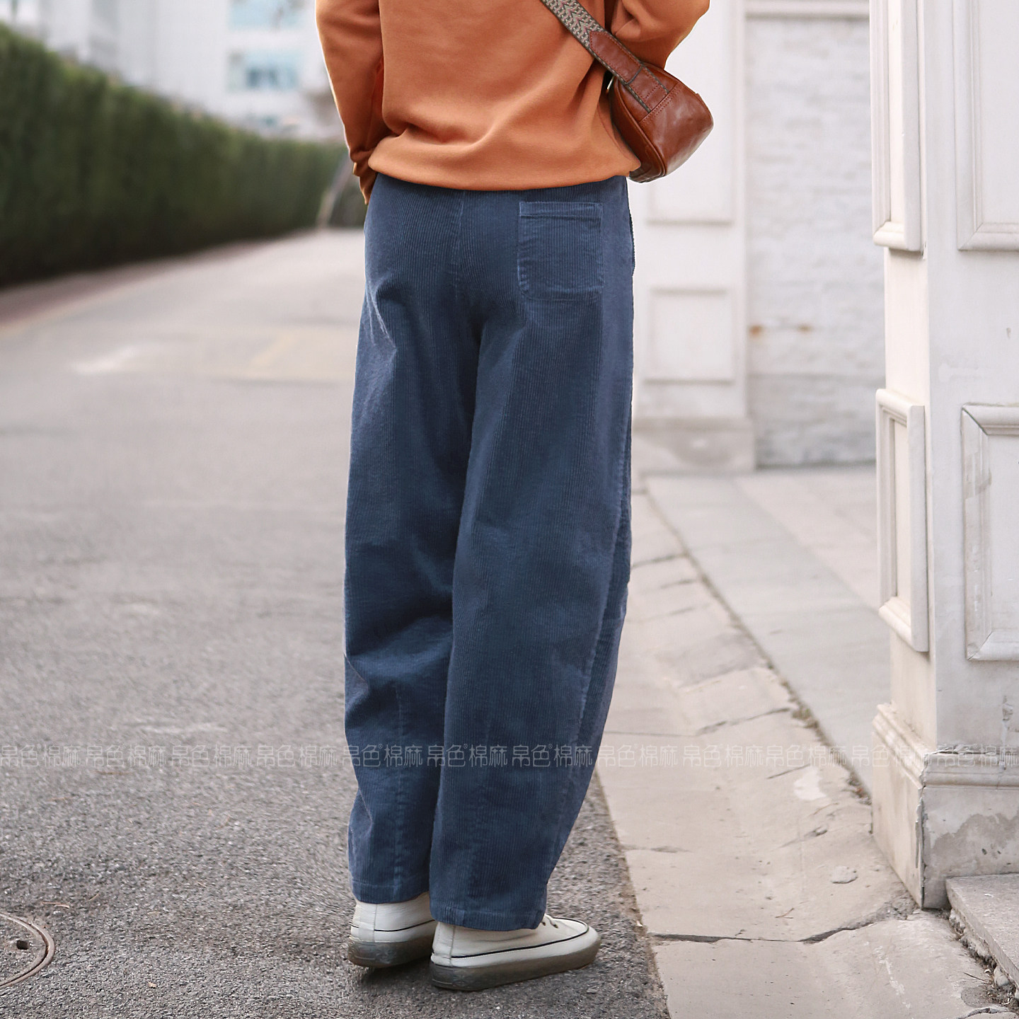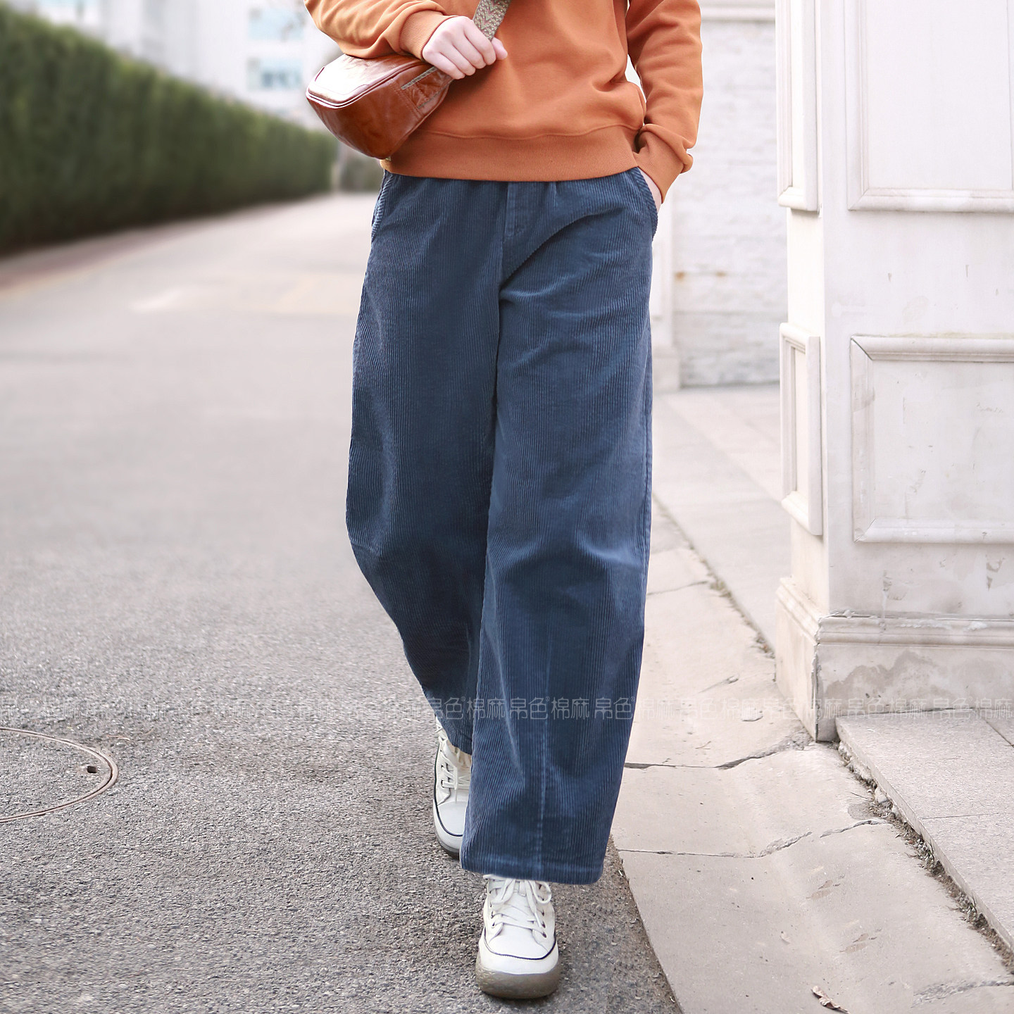 2026春秋甜味蓝纯棉条绒裤子灯芯绒萝卜裤条绒宽腿裤休闲宽松弛感