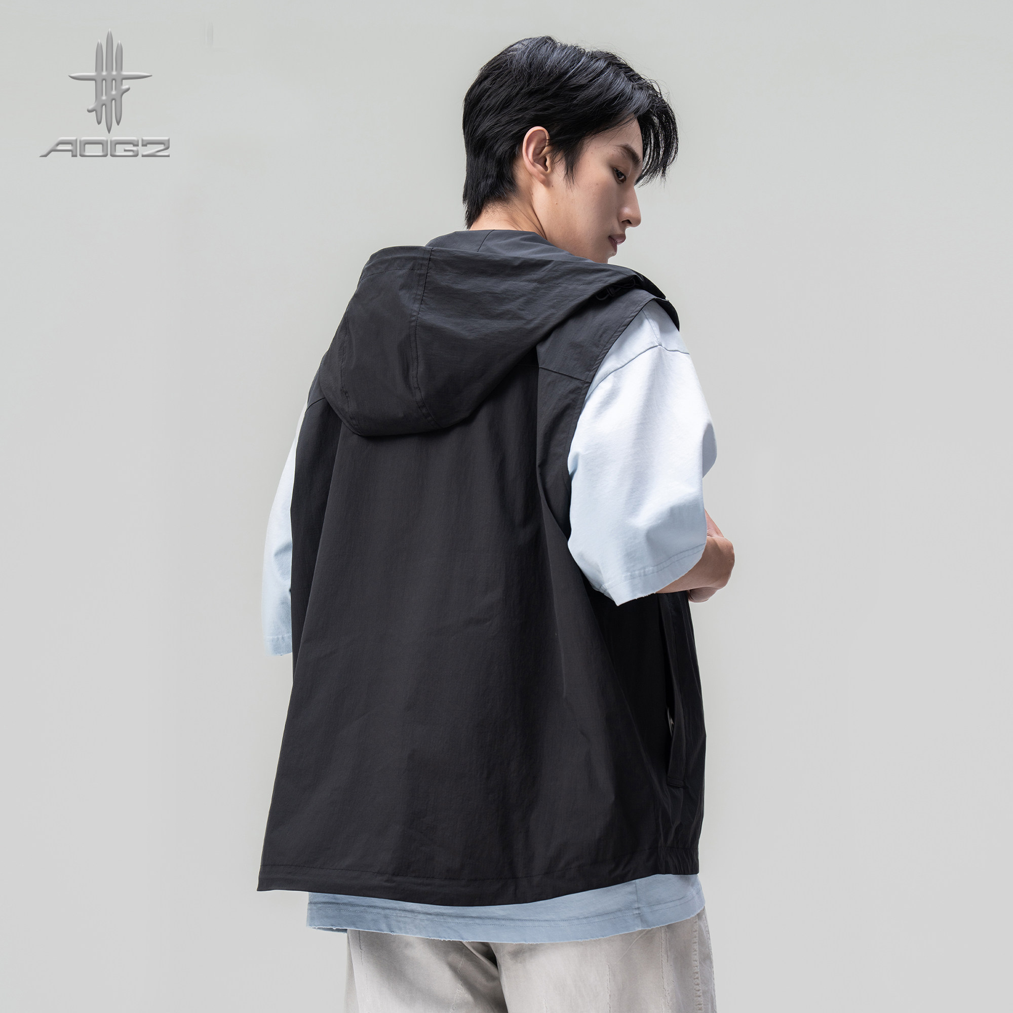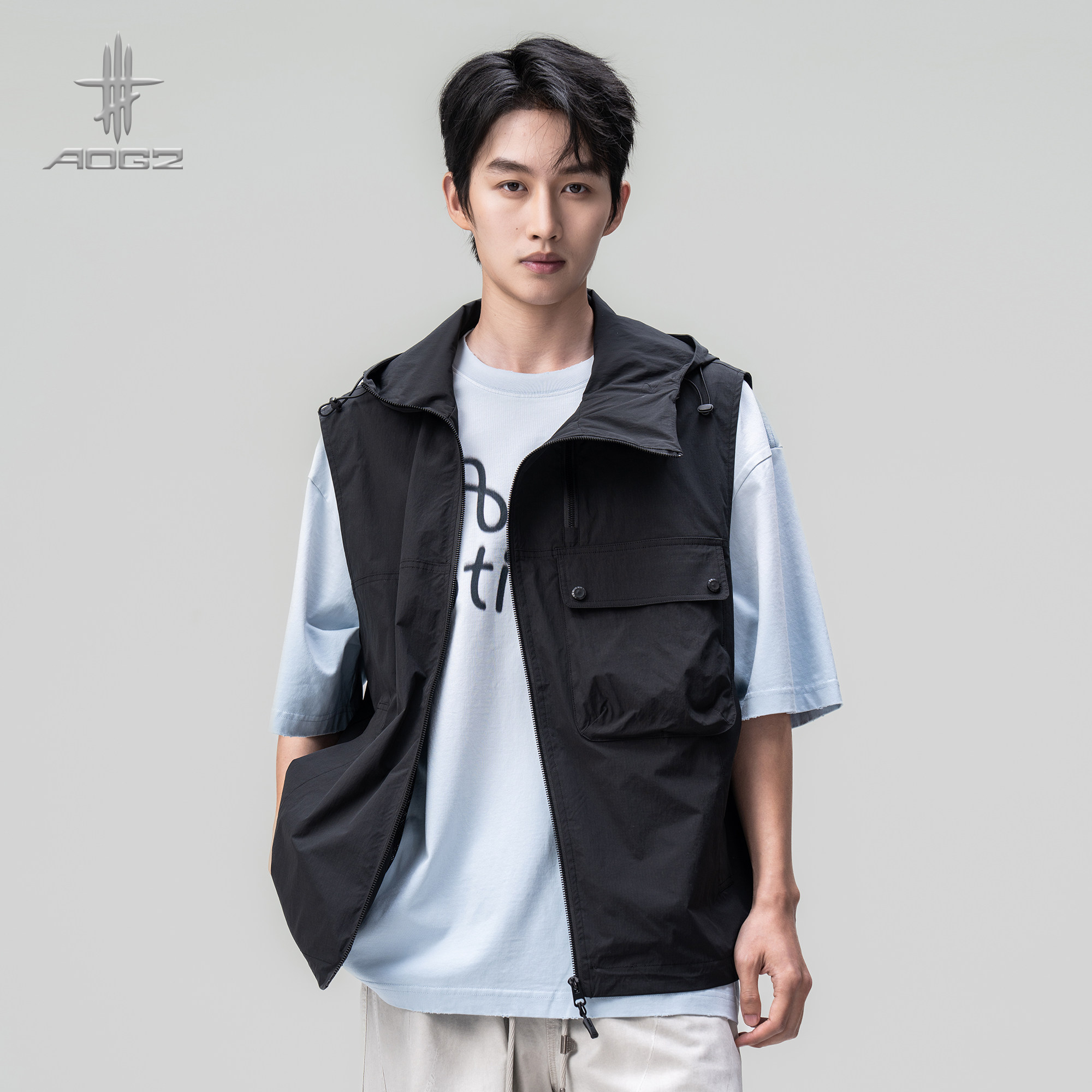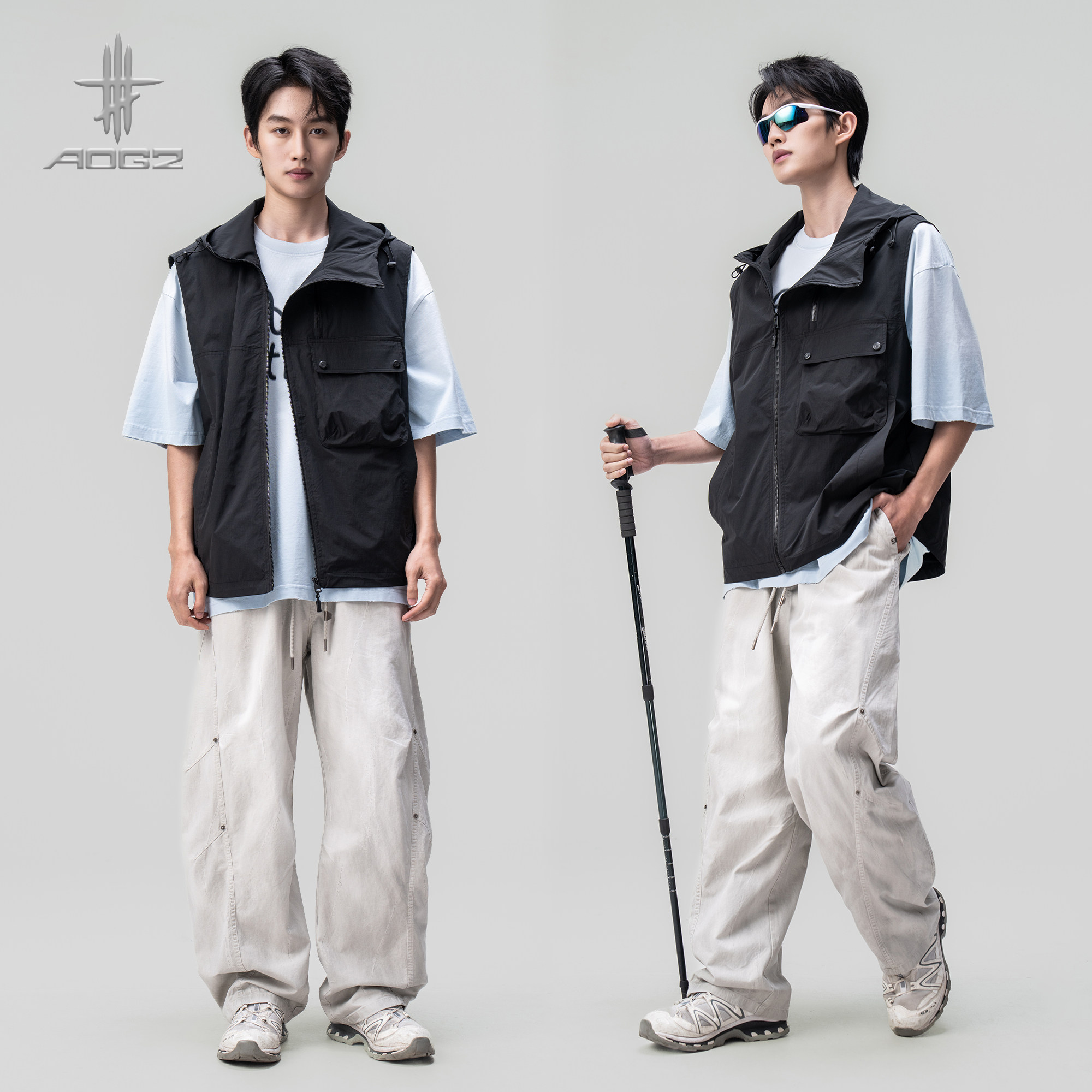 AOGZ工装连帽机能风户外马甲男女生2026春夏新款潮牌无袖外套背心