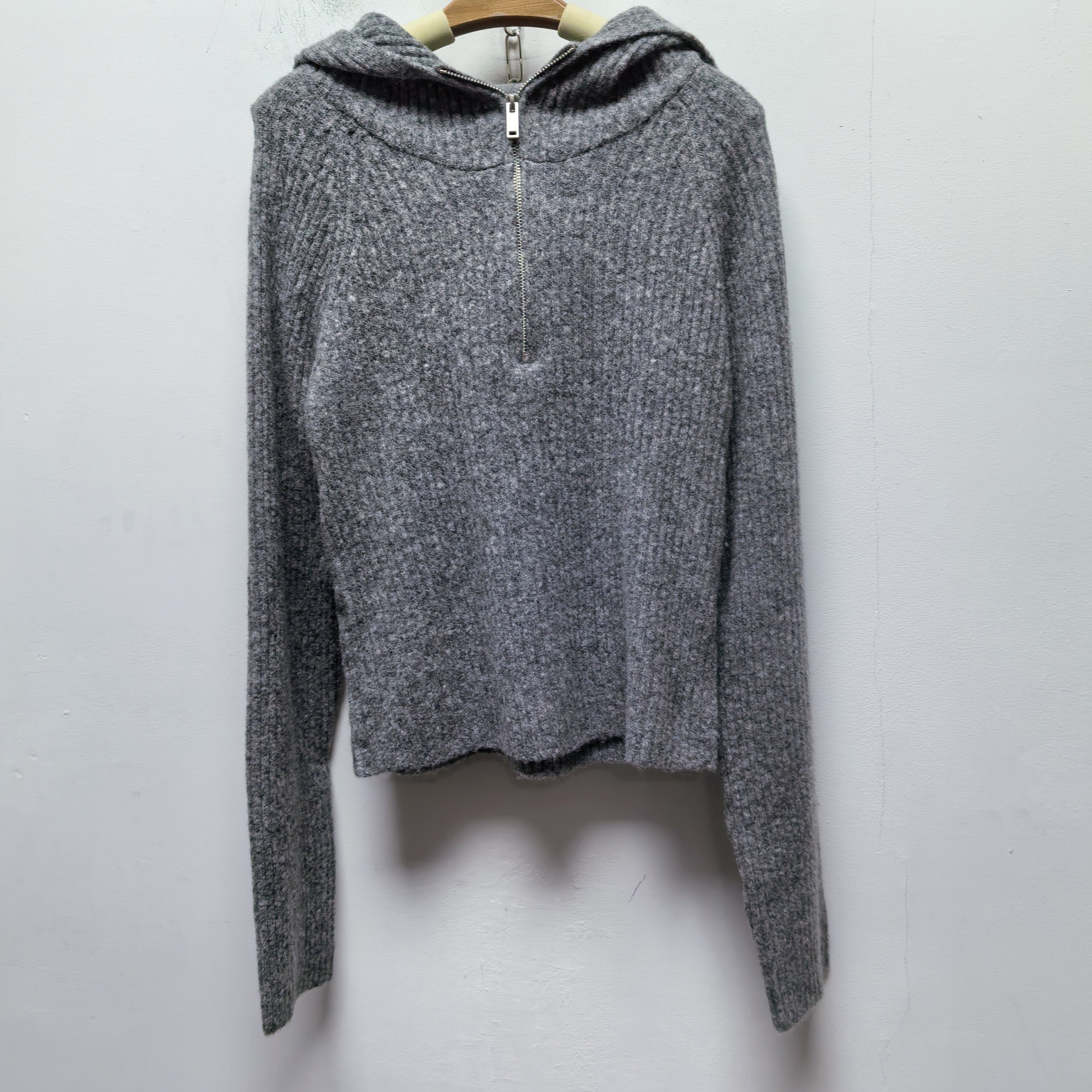 T去标撤柜设计感秋冬款女装休闲时尚连帽半拉链针织衫毛衣I507