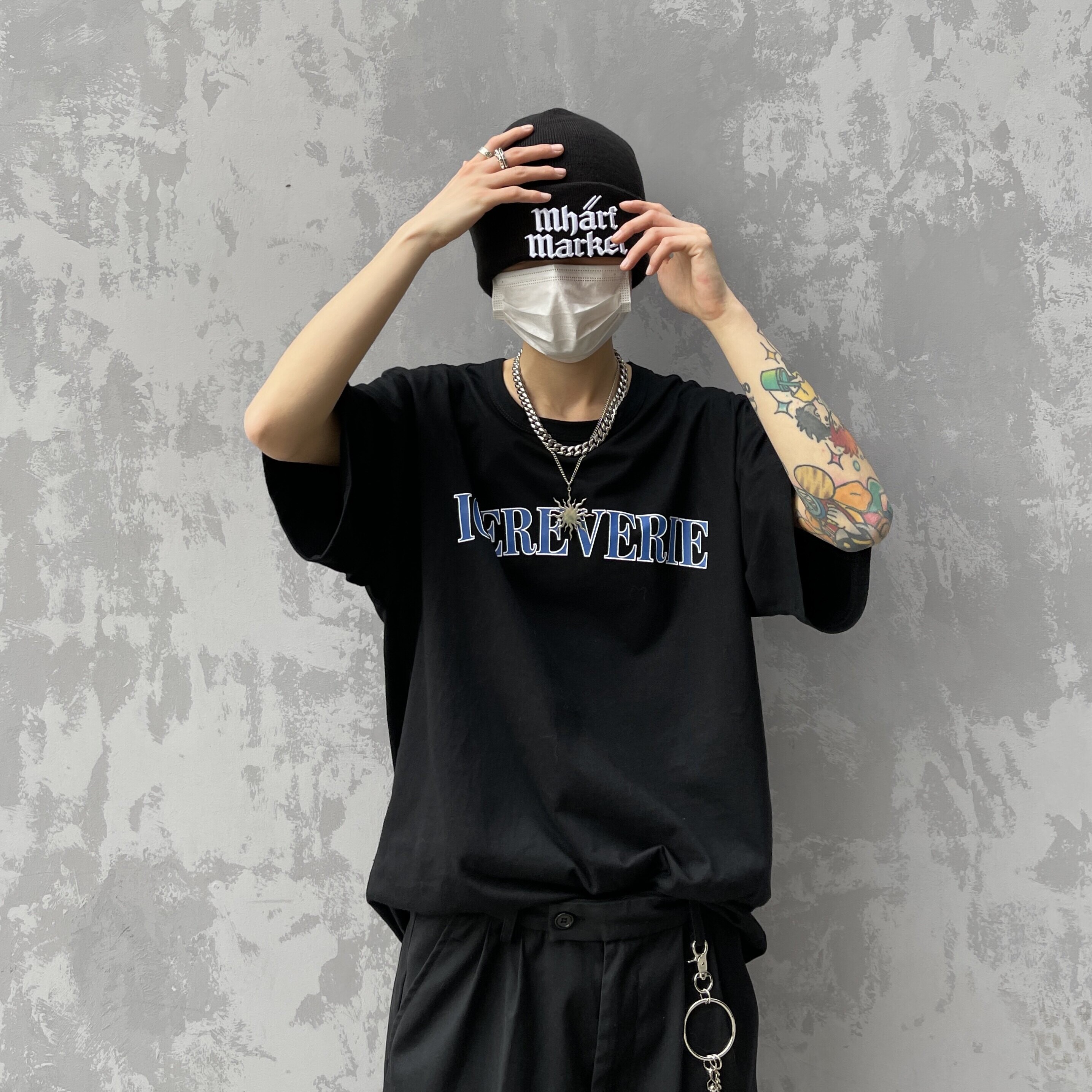 ICEREVERIE 夏季潮流衣服圆领印花纯色新疆棉打底衫宽松短袖t恤男