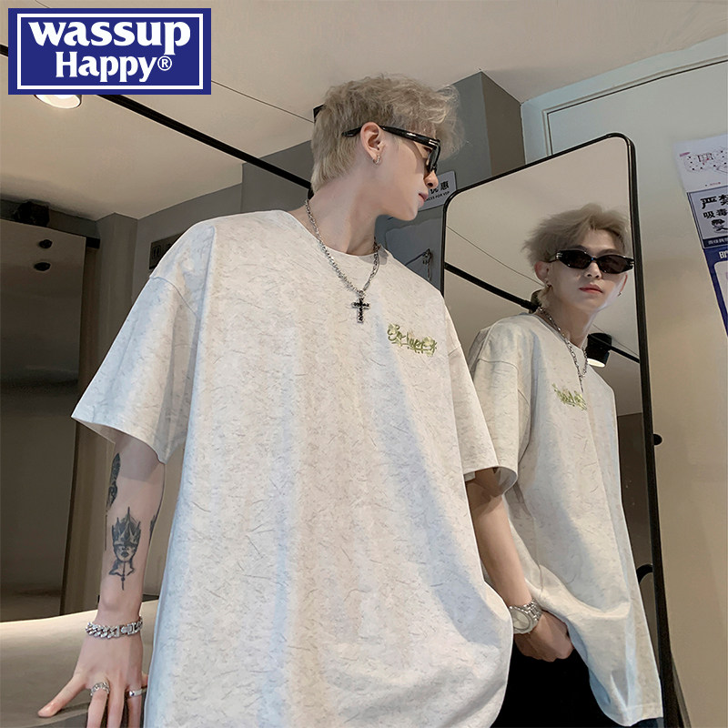 --------------------- wassup happy刺绣圆领短袖t恤男夏季重磅休闲上衣宽松百搭五分袖 【原售价】199元 【现售价】139元 【推荐理由】
