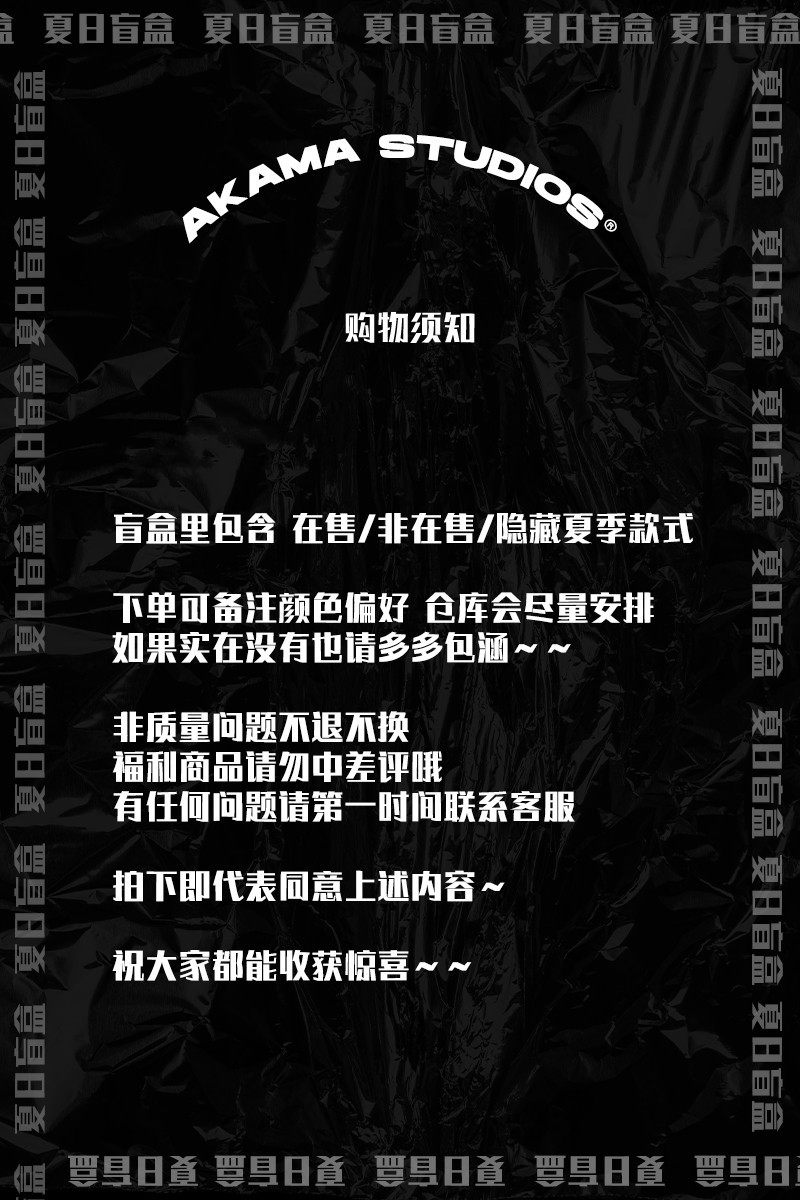 --------------------- AKAMA夏季原创款式78.8元2件 款式随机 可选尺码/盲盒福袋 【原售价】78.8元 【现售价】69.3元 【推荐理由】