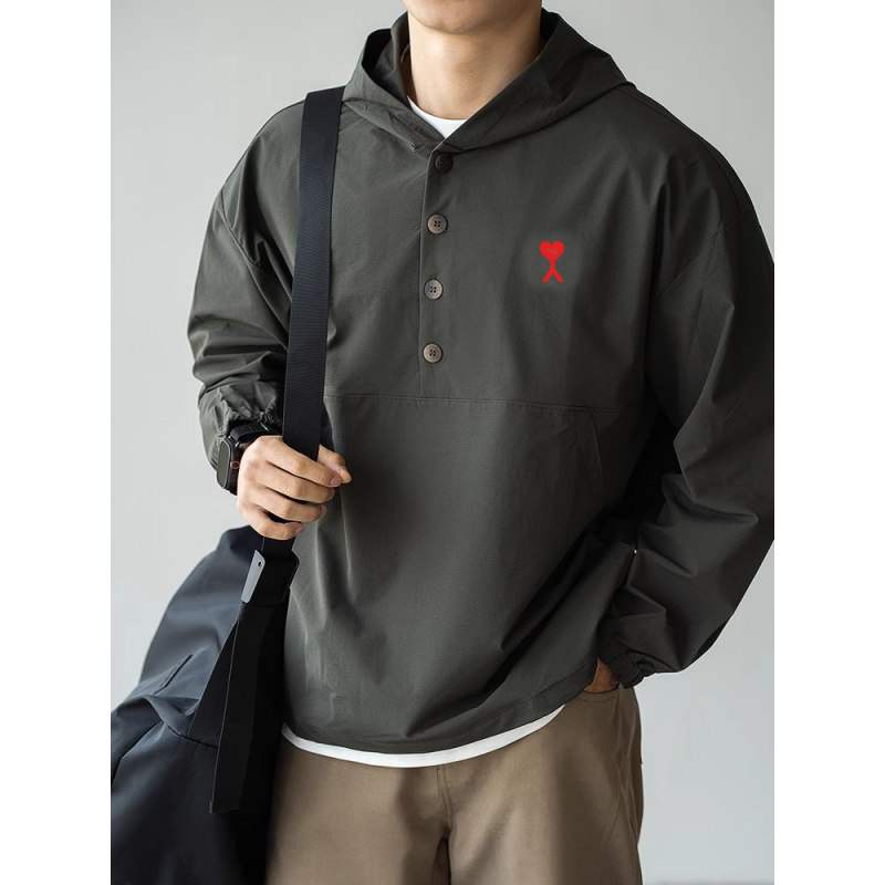 正品AMI DRAJK美式简约秋季男速干透气休闲百搭宽松连帽夹克外套