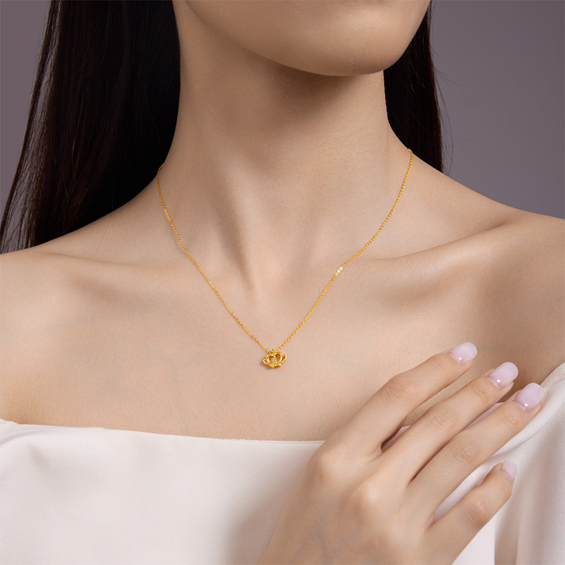 【中国黄金官方店】黄金项链5G皇冠足金套链百搭颈饰新品送女友