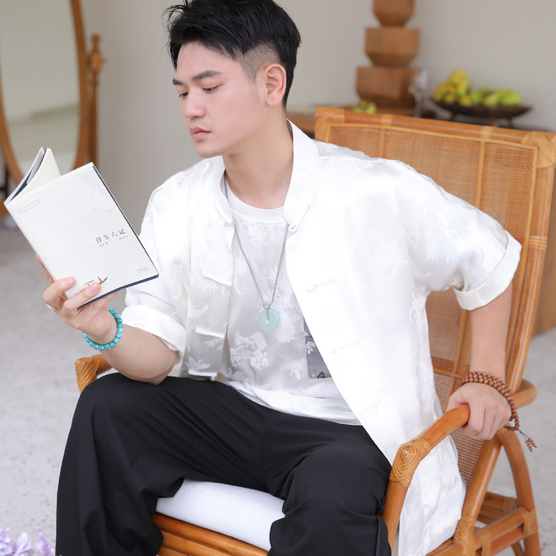 --------------------- 风清*三重门新中式真丝混纺复古盘扣唐装外套国潮民立领中山装男 【原售价】1080元 【现售价】855元 【推荐理由】