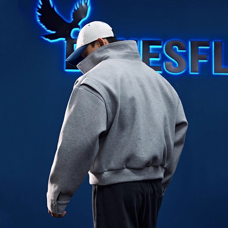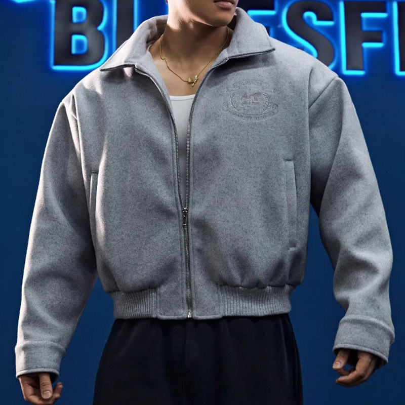 --------------------- 美式短款毛呢夹克外套男女装2025秋冬新款廓形翻领健身休闲上衣潮 【原售价】158元 【现售价】138元 【推荐理由】