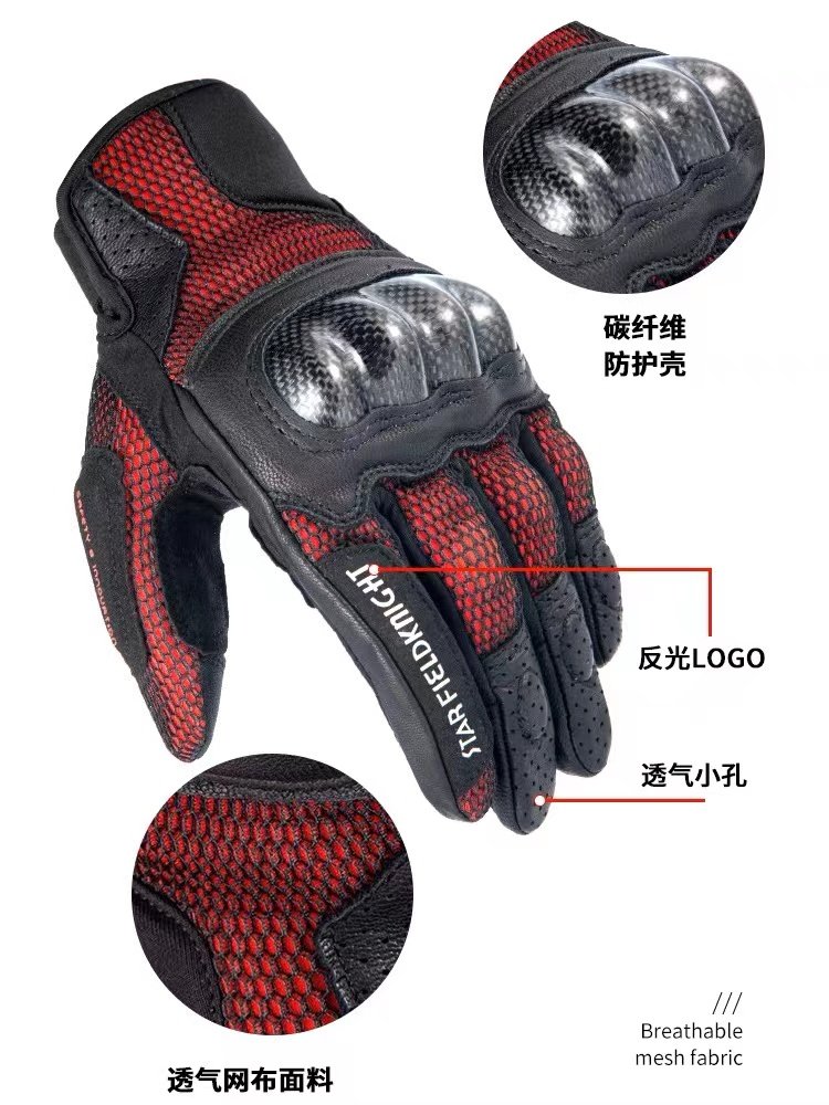 星空骑士夏季摩托车手套碳纤维男女触屏机车赛车骑行装备防摔透气