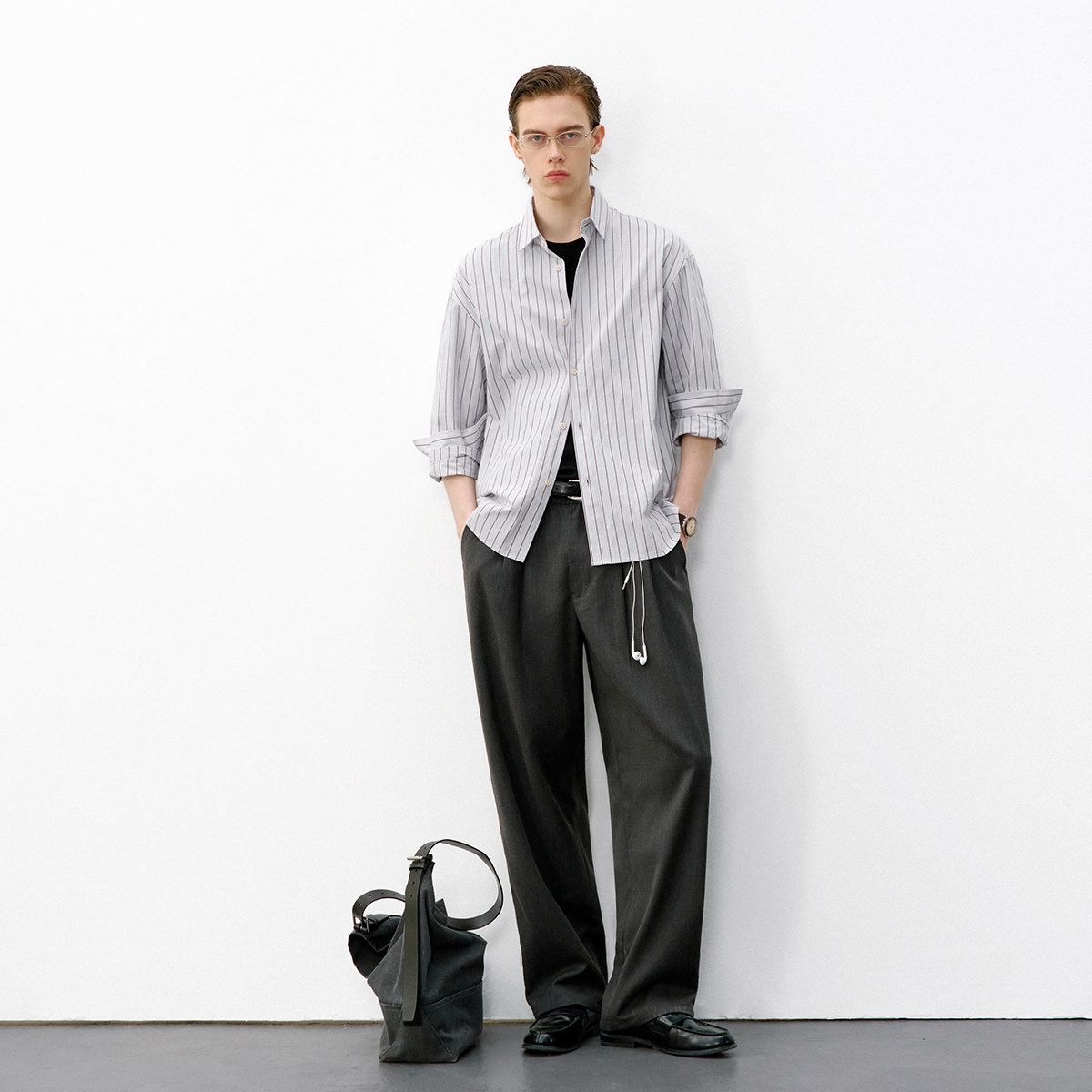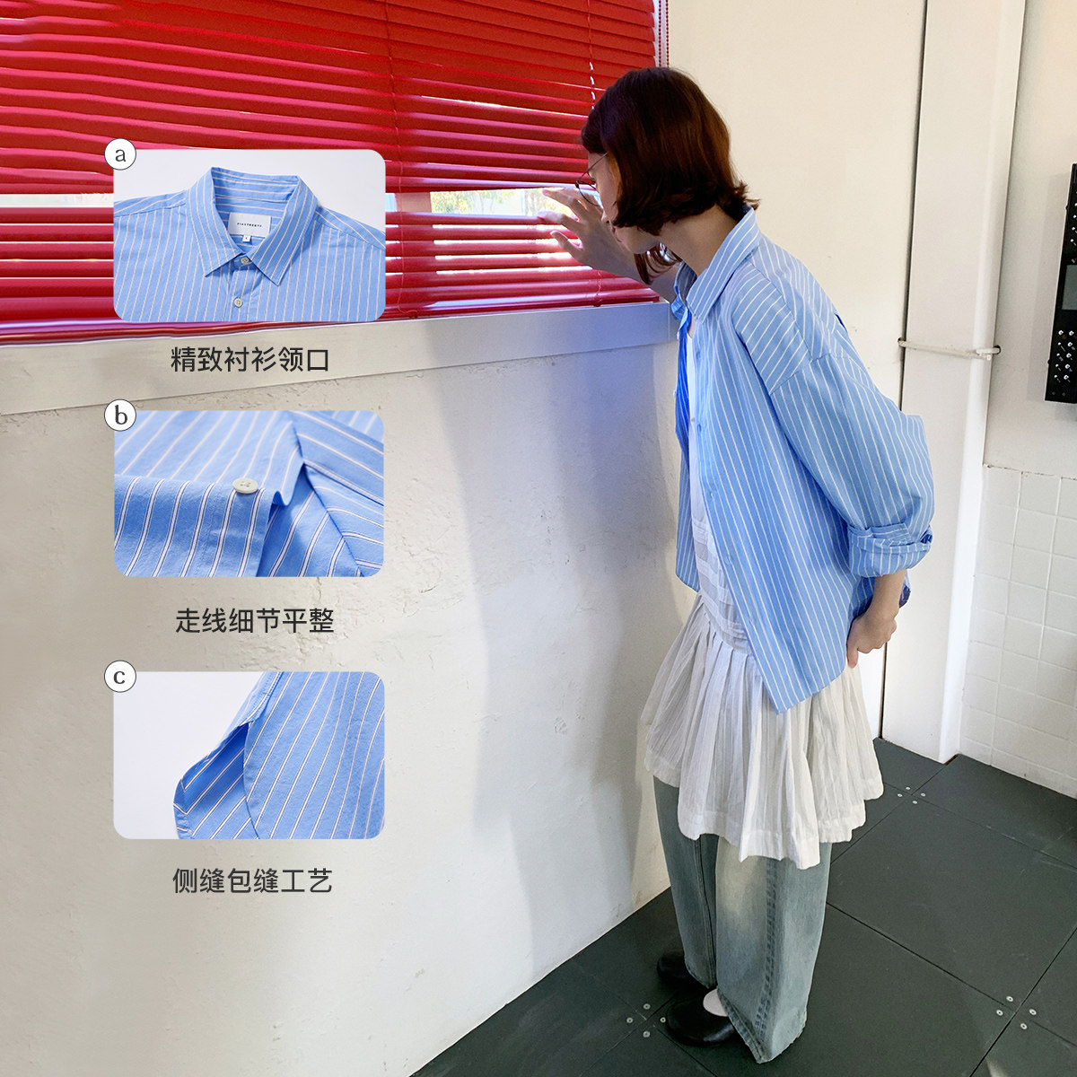 淘宝714street高密砂洗条纹长袖衬衫男2026春季国潮情侣微宽落肩衬衣