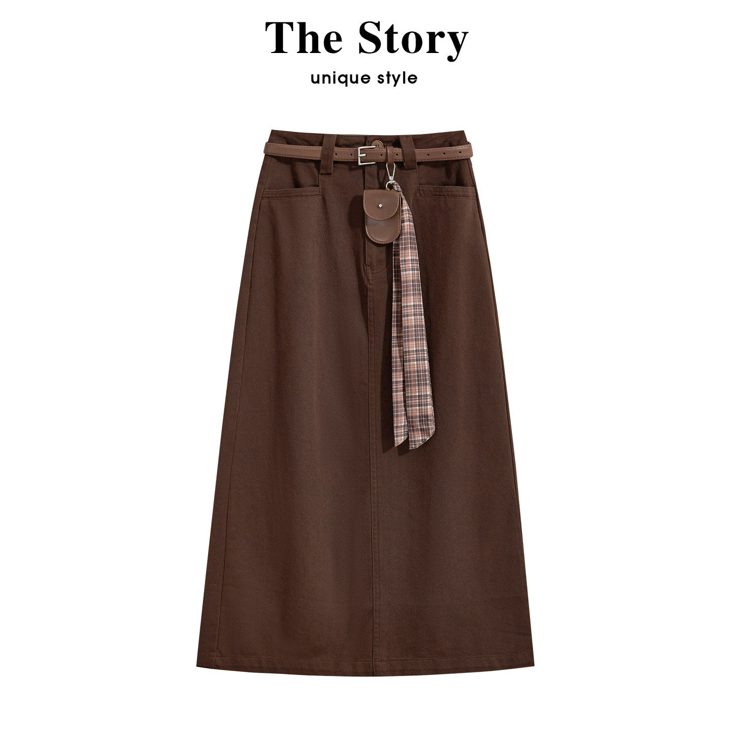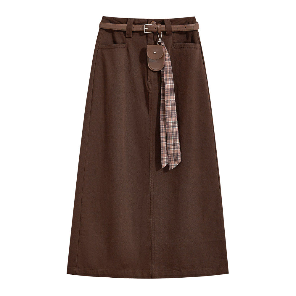淘宝那些事衣橱高腰显瘦简约咖色半身裙女早春季休闲后开叉a字包臀裙
