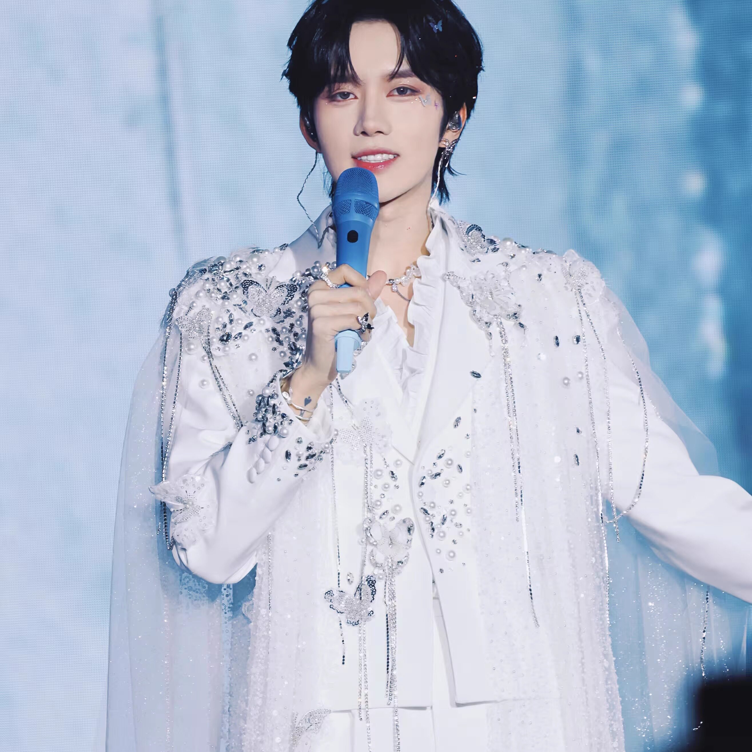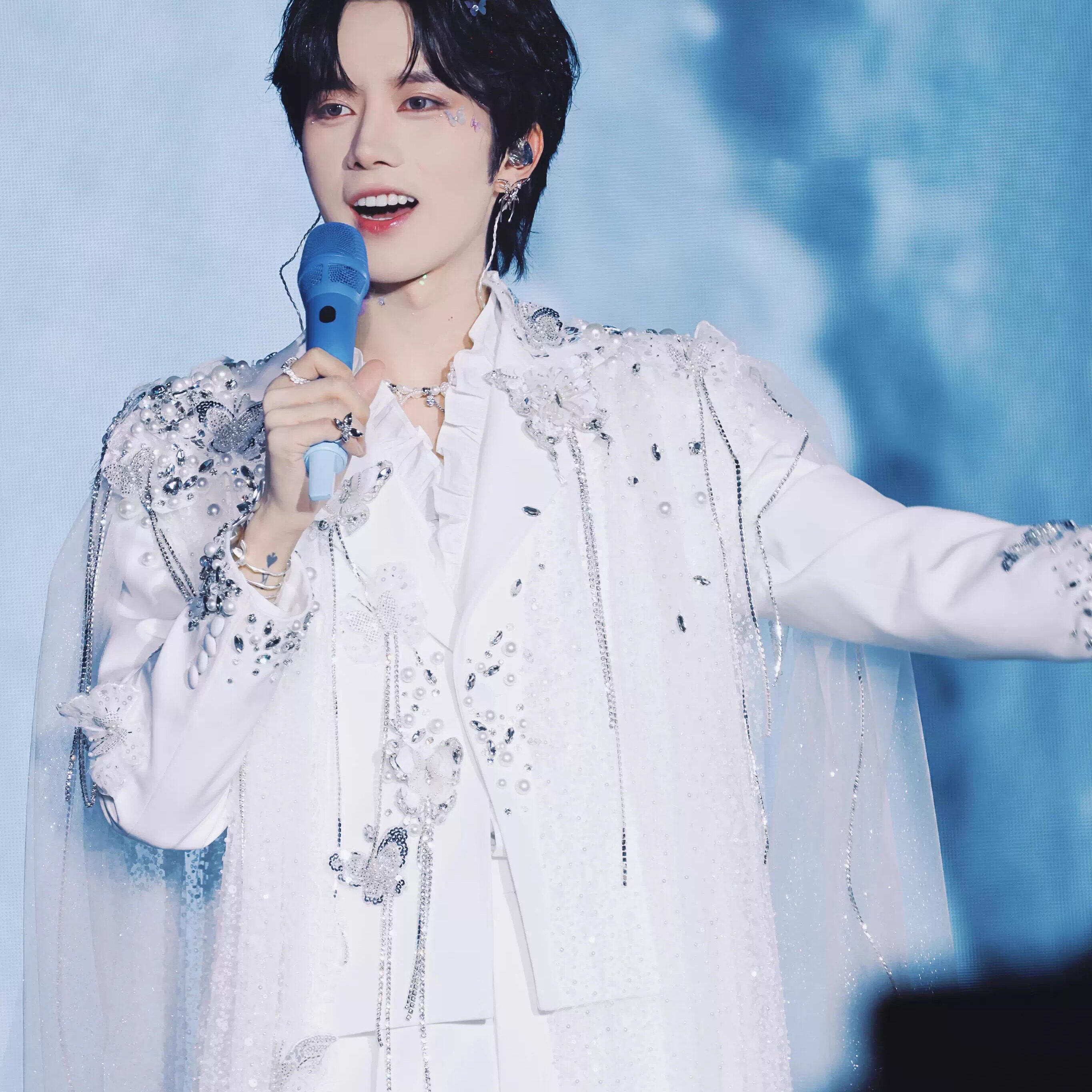 黄星明星同款白色重工镶钻装饰西装男舞台表演商务正装西服套装潮