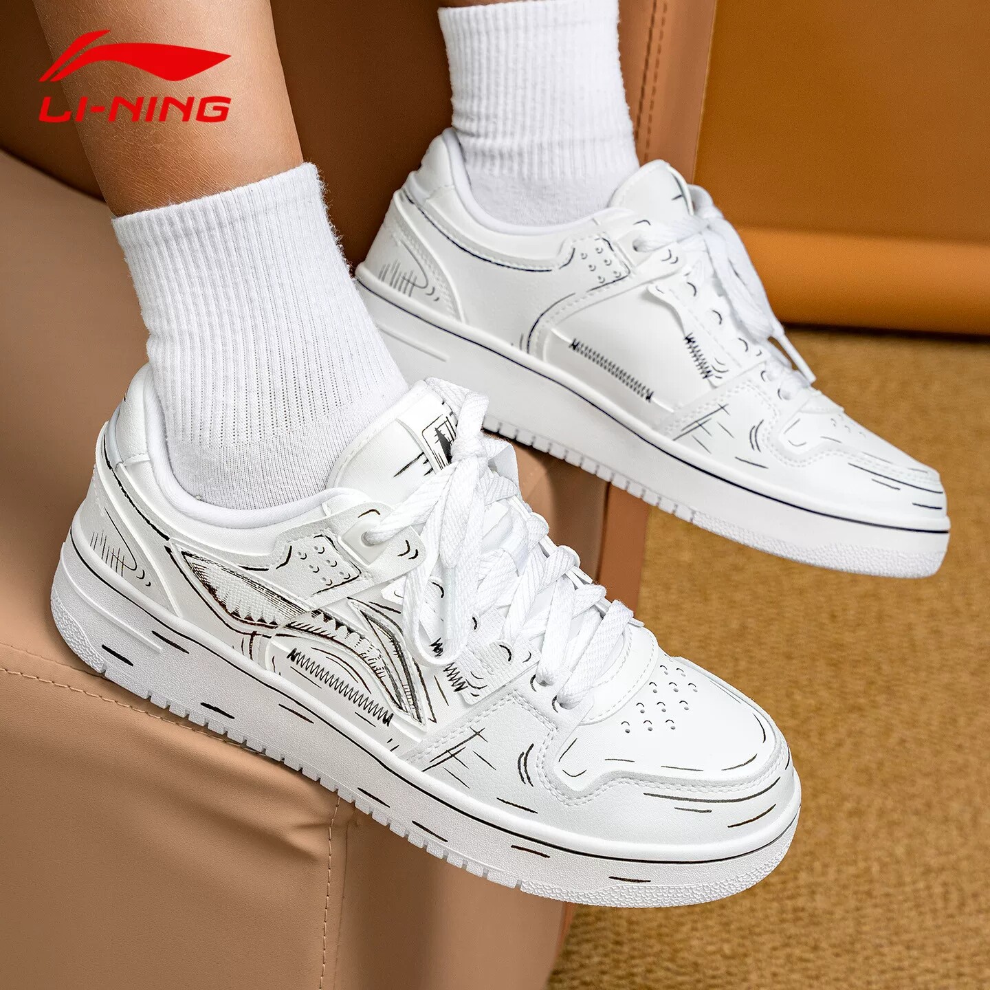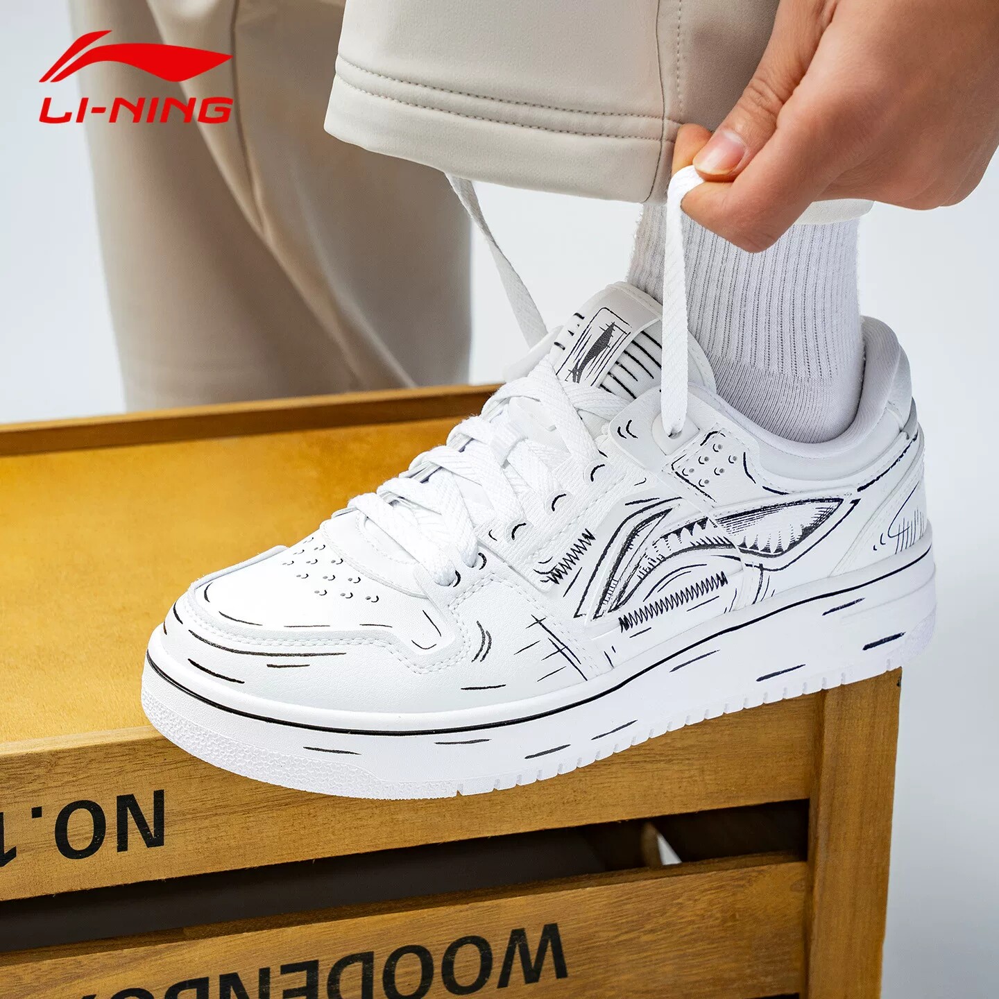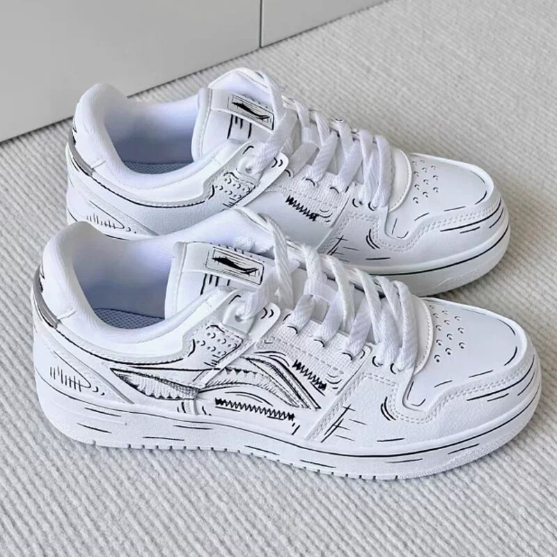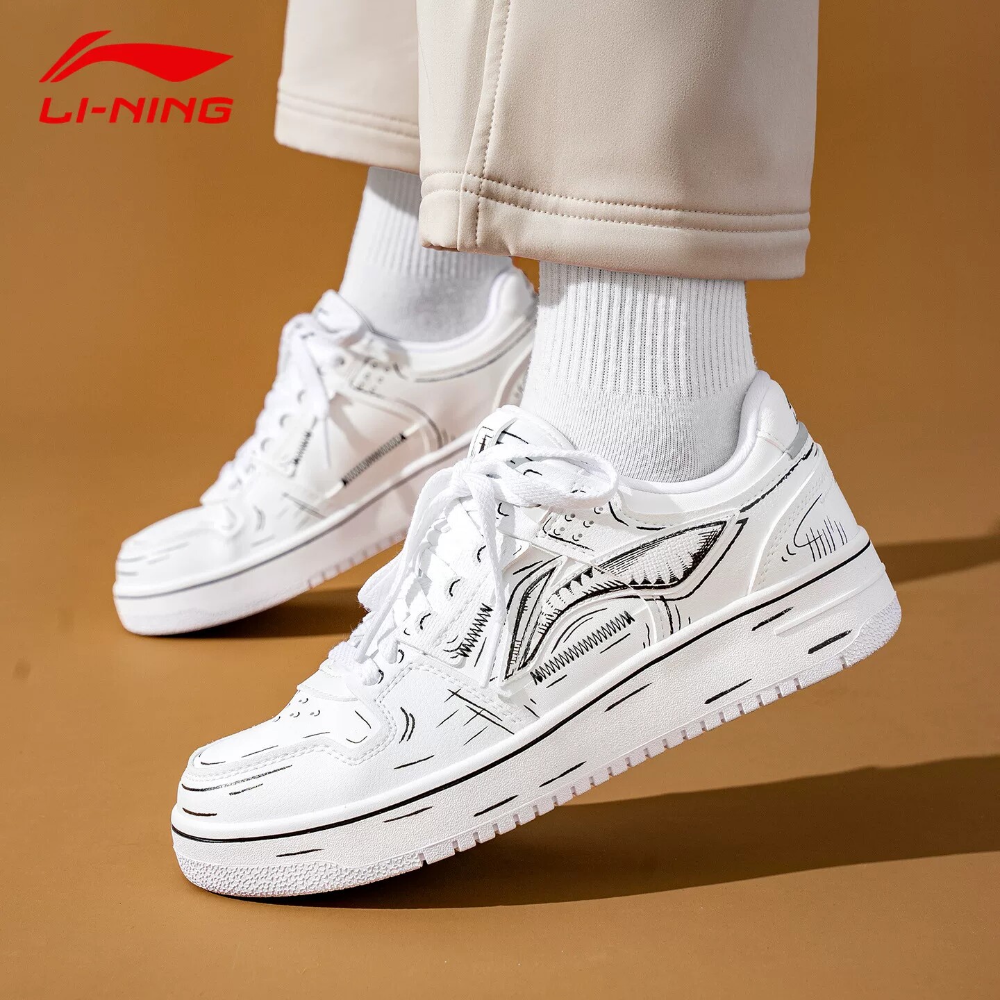 李宁板鞋男士小白鞋天迹新款防滑耐磨低帮涂鸦经典学生休闲鞋