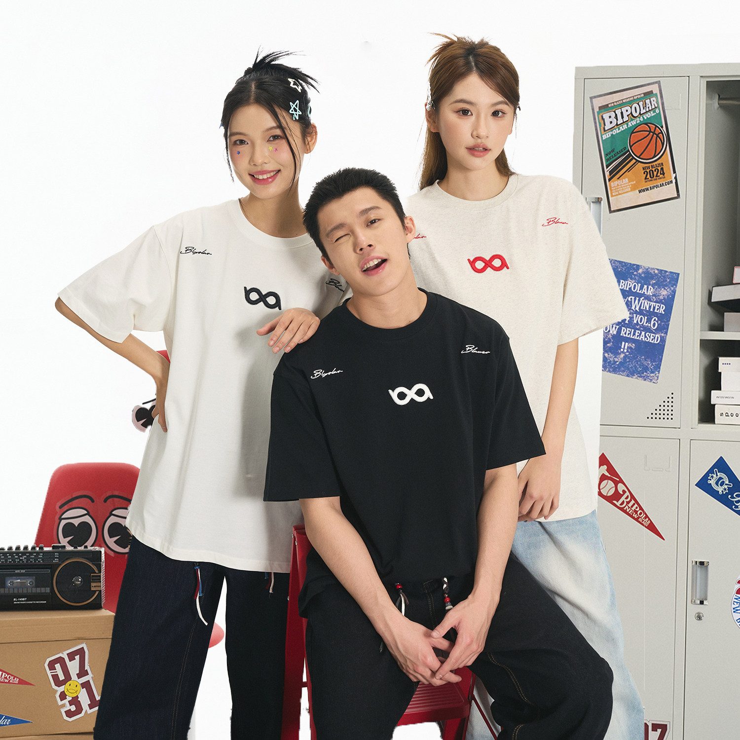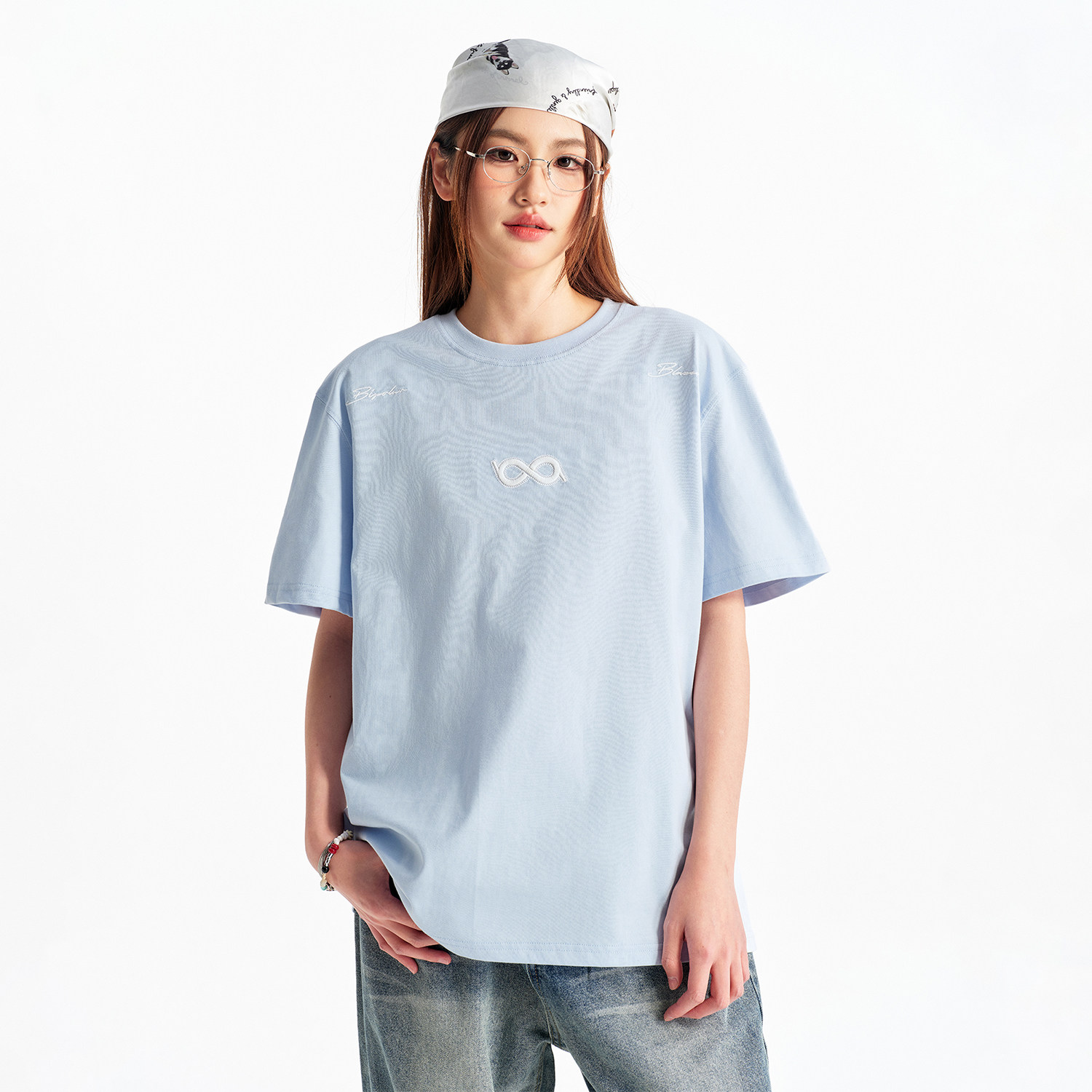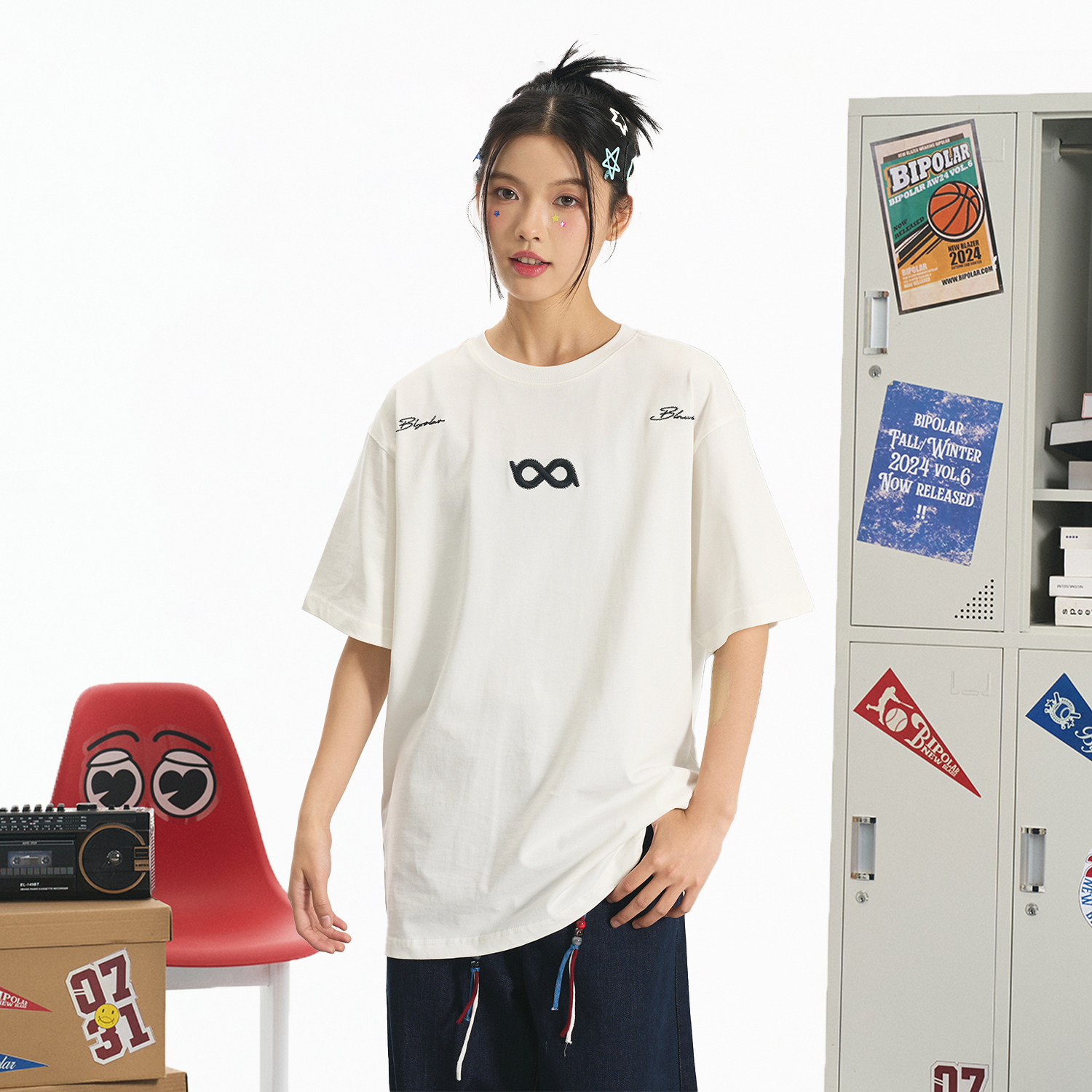 BIPOLAR断开字绣花短袖T恤重磅纯棉圆领上衣休闲百搭基础款夏季