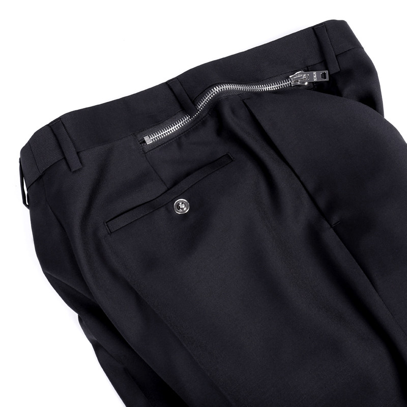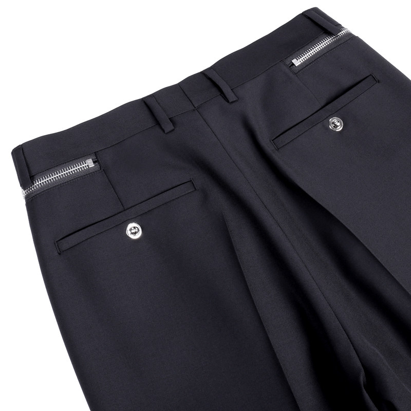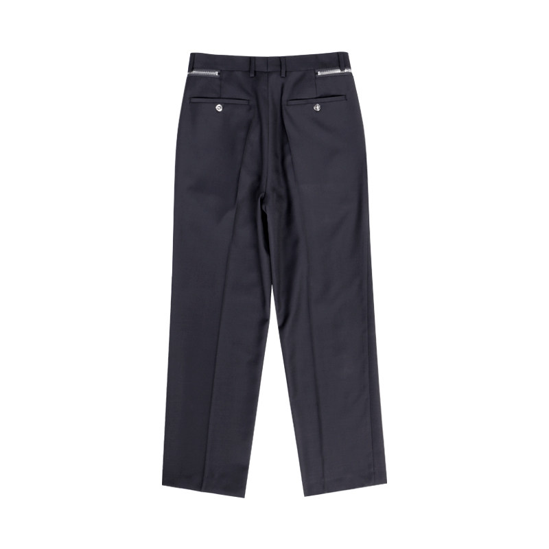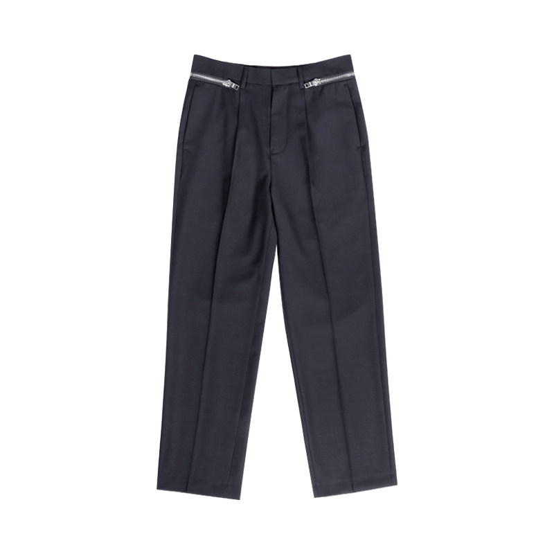 设计师MUSLUN男装 休闲直筒裤 精纺羊毛直筒拉链个性长西裤