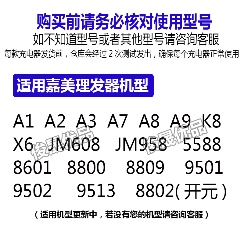 --------------------- 嘉美电推理发器充电器充电线电源配件A7 A8 K8 5588 JM608 X6 A2 【原售价】14.8元 【现售价】14.8元 【推荐理由】