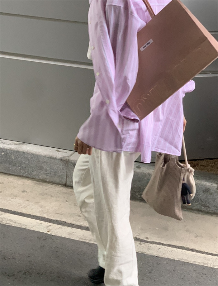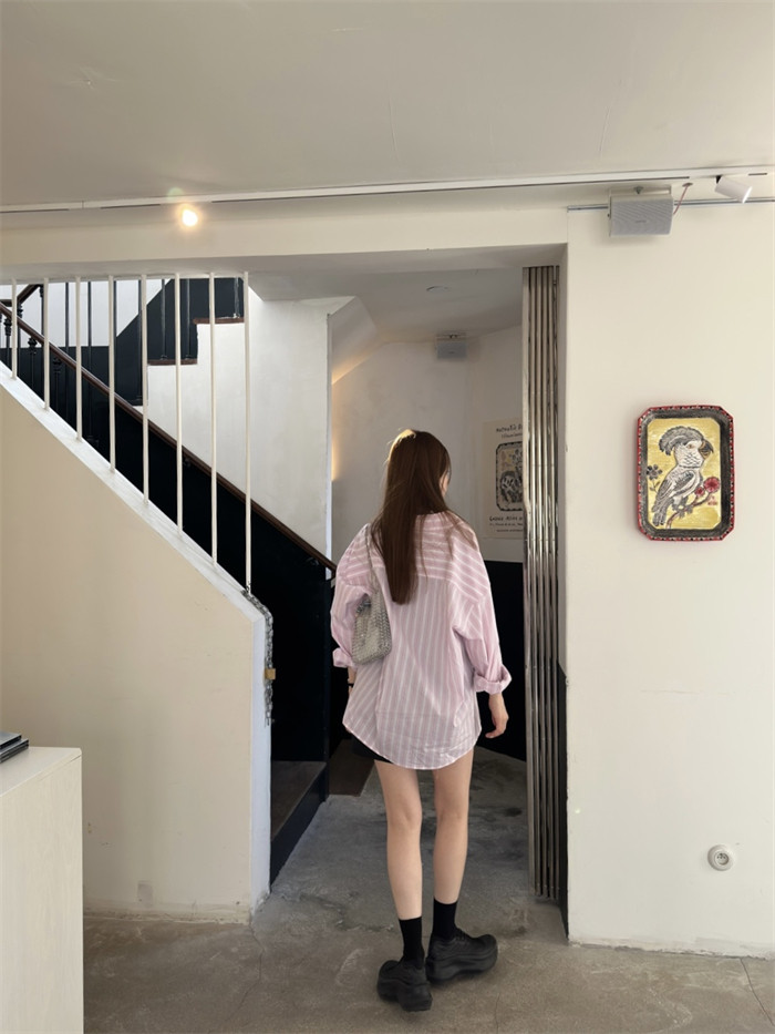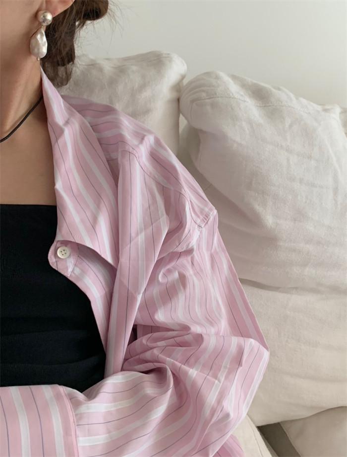 --------------------- 【现货】韩国小众Mone粉色条纹衬衫 oversize防晒衣外套 【原售价】368元 【现售价】323元 【推荐理由】