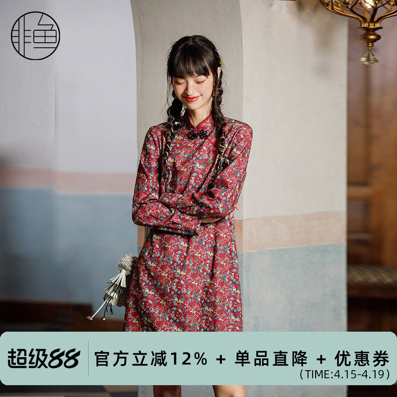--------------------- 非鱼秋冬新款原创设计磨毛棉旗袍连衣裙国潮印花长袖连衣裙 --------------------- --------------------- 【原价】1458元 【券后价】244元
