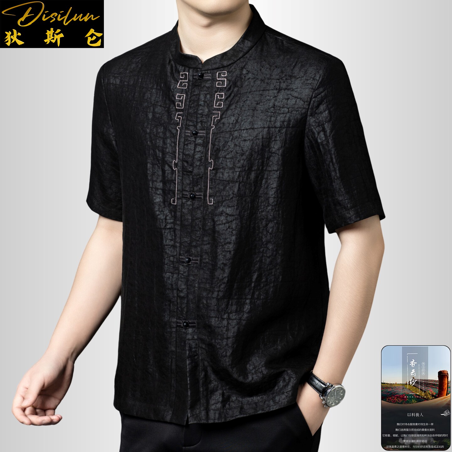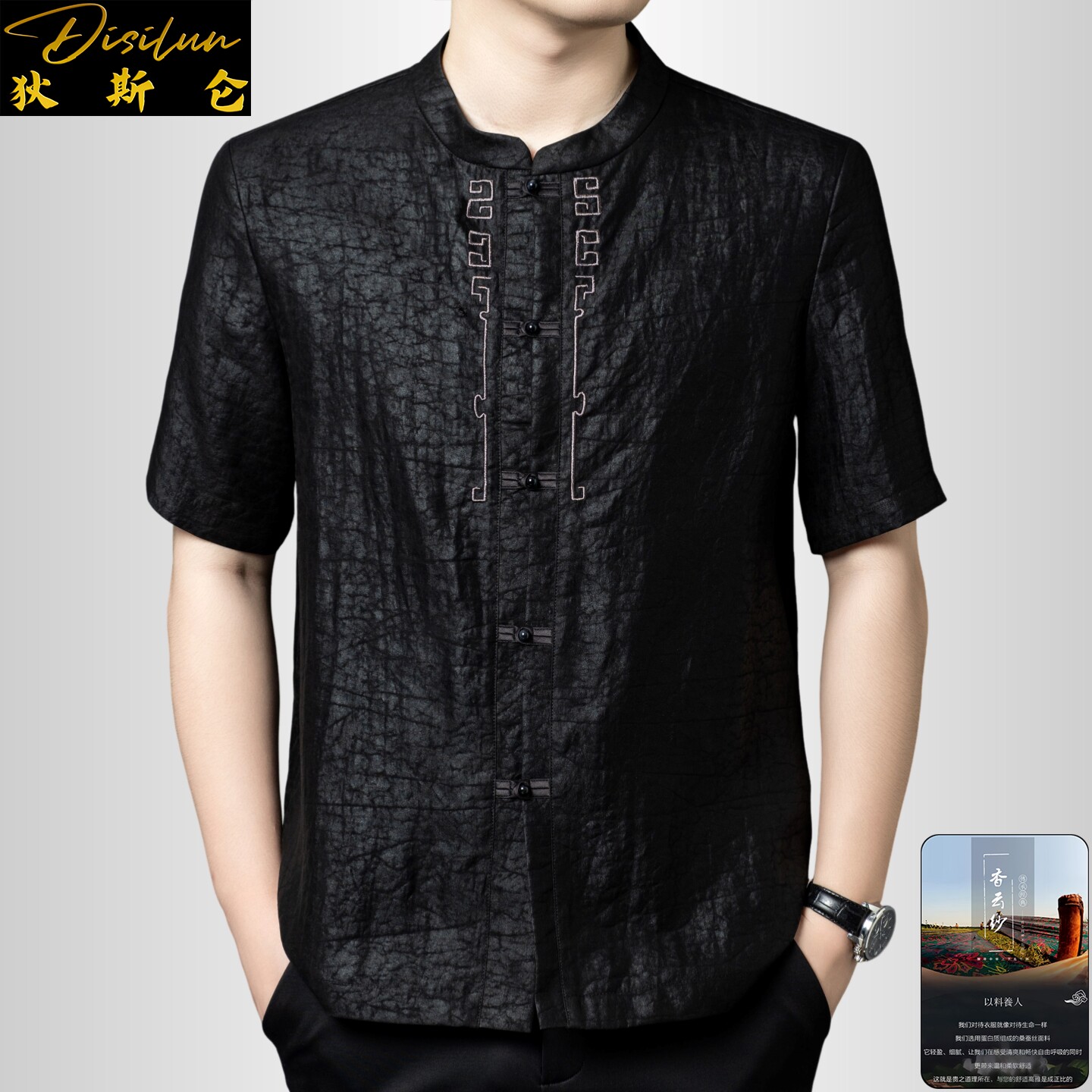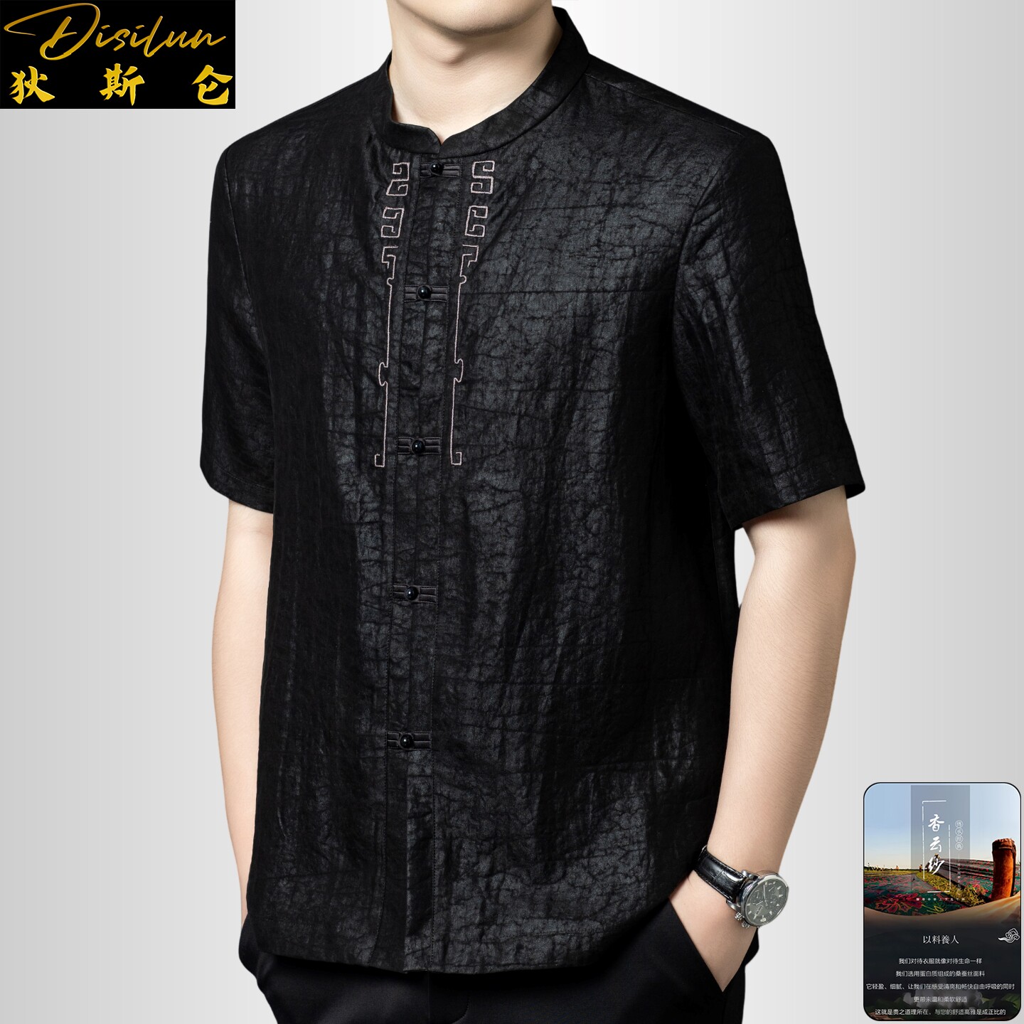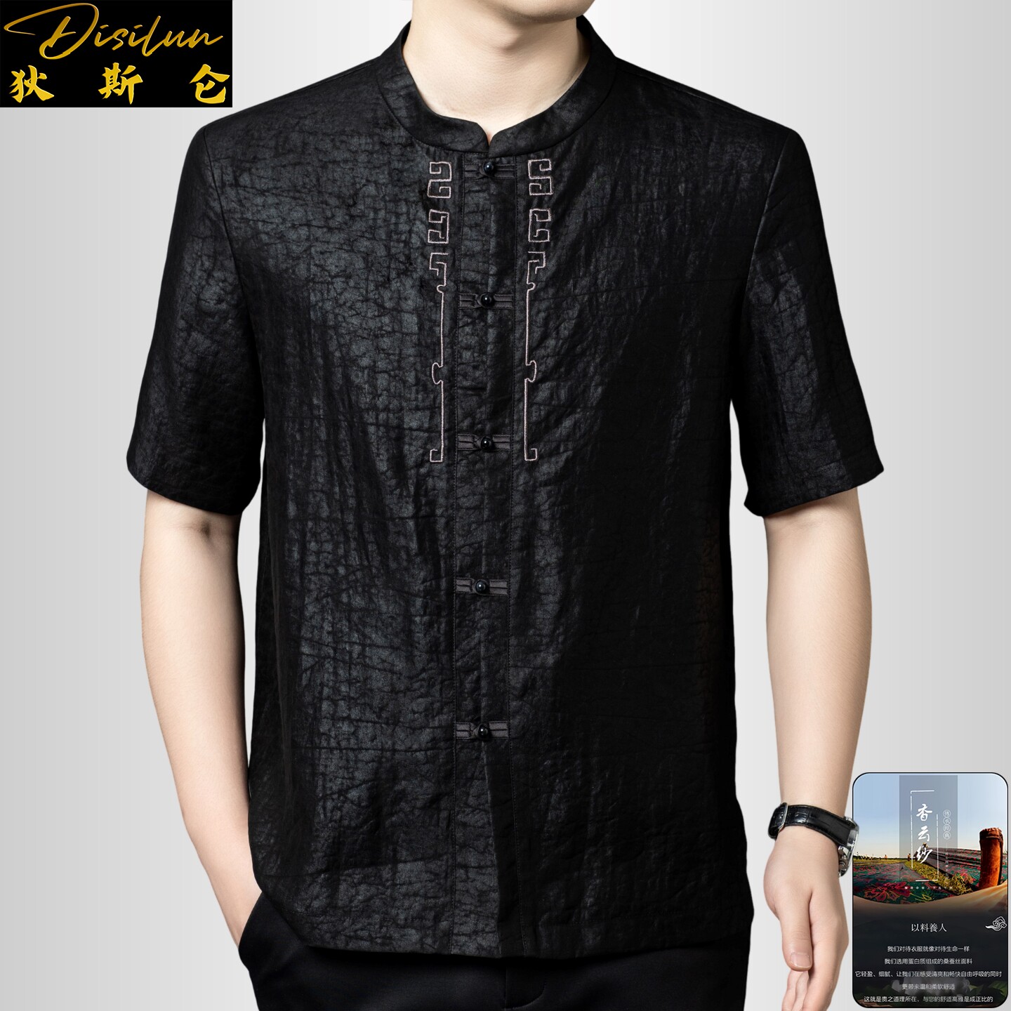 --------------------- 狄斯仑龟裂纹香云纱短袖衬衫男2026夏新款中式中年盘扣桑蚕丝唐装 【原售价】1390元 【现售价】1251元 【推荐理由】